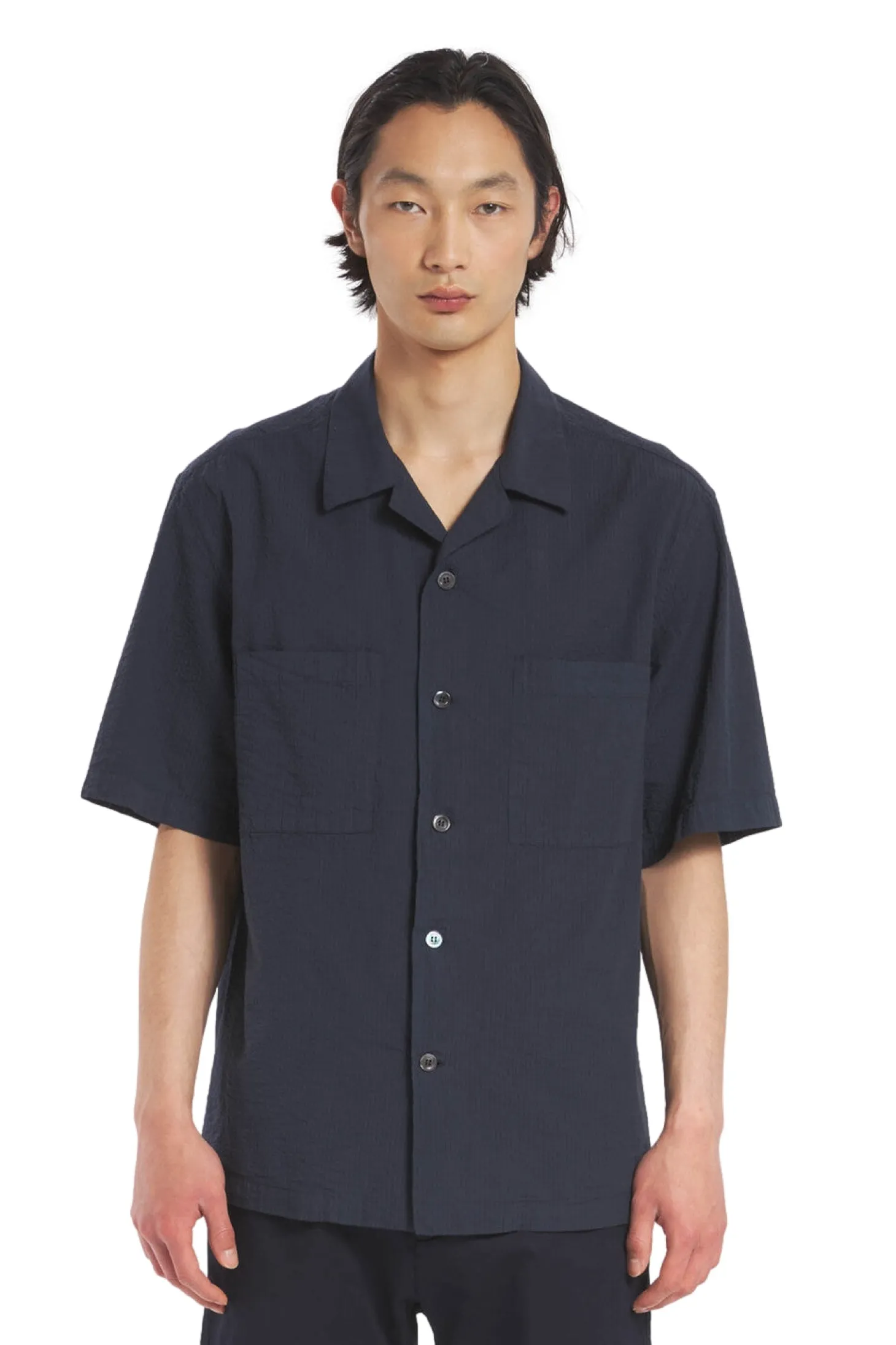Kortermet skjorte med bowlingkrage og brystlomme.