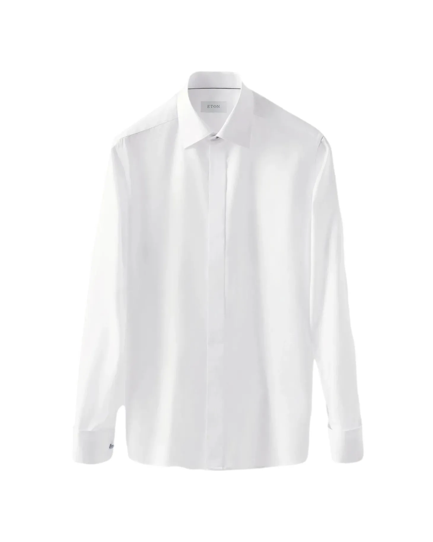 Skjult knappestilling og fransk dobbelmansjett. Cut away krage.