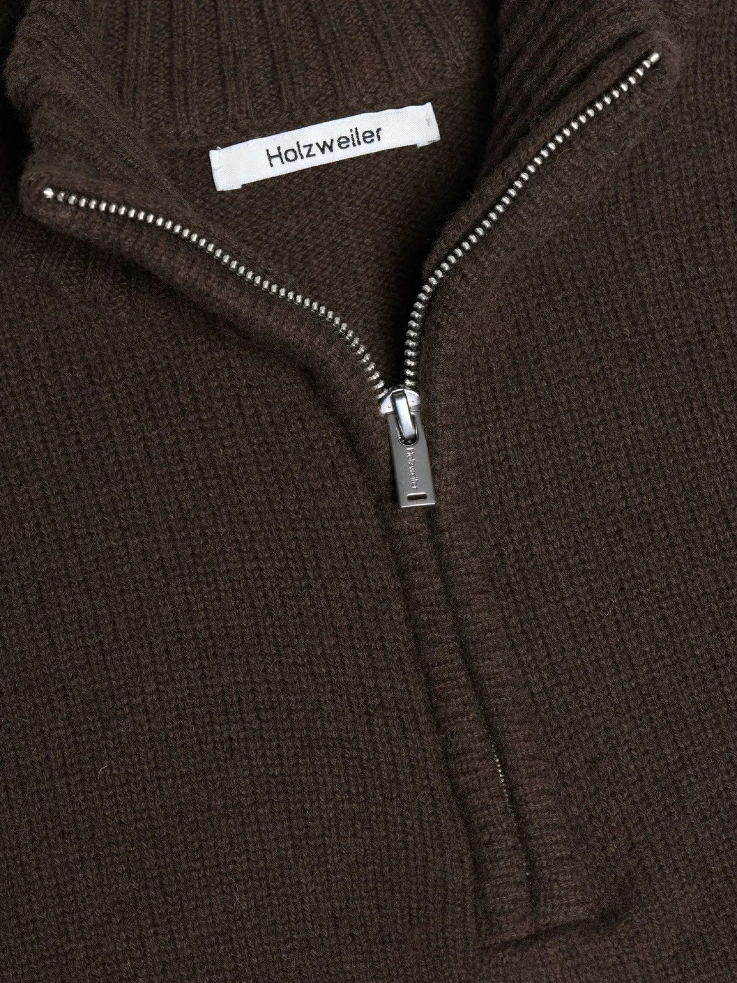 Høyhalset strikketgenser med zip i løs og avslappet passform.