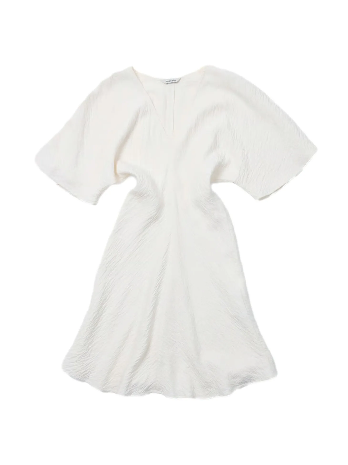 Kortermet kjole med v-hals og innsving i midjen.