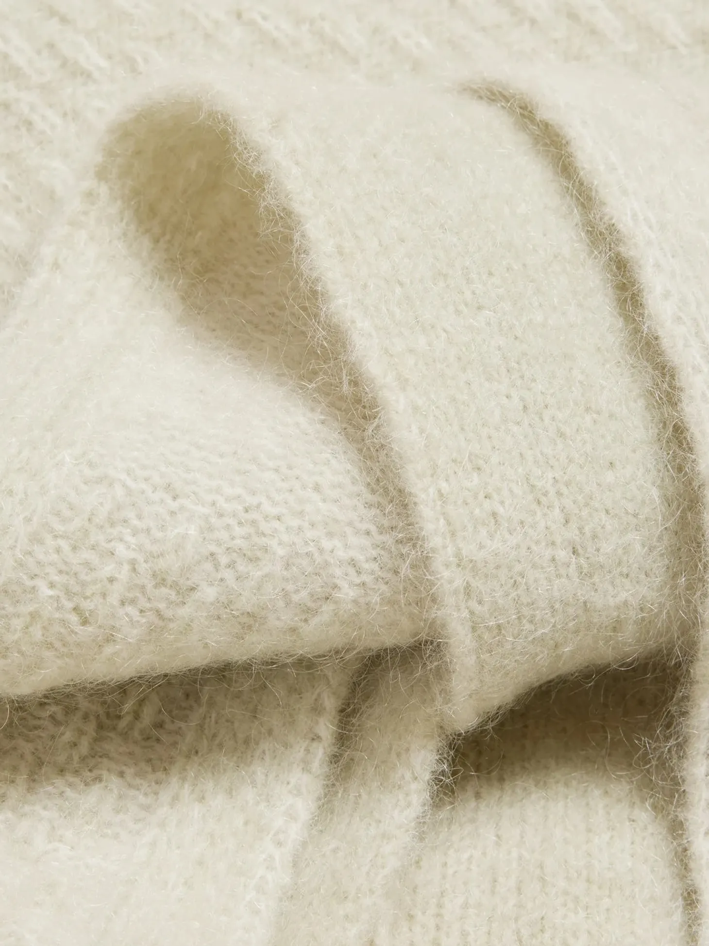 Laget av 33% Mohair, 33% Ull, 29% Nylon og 5% Elastan.