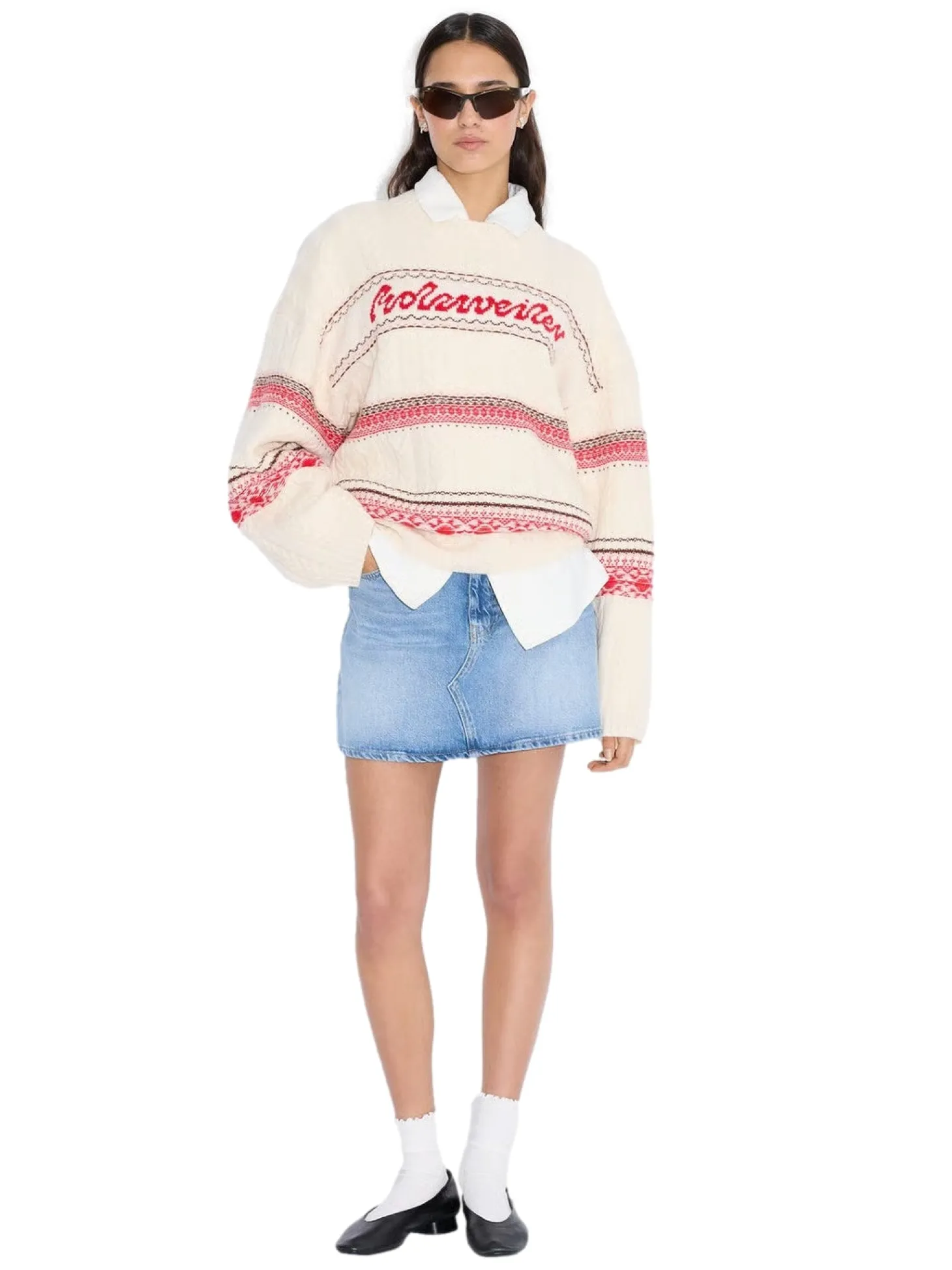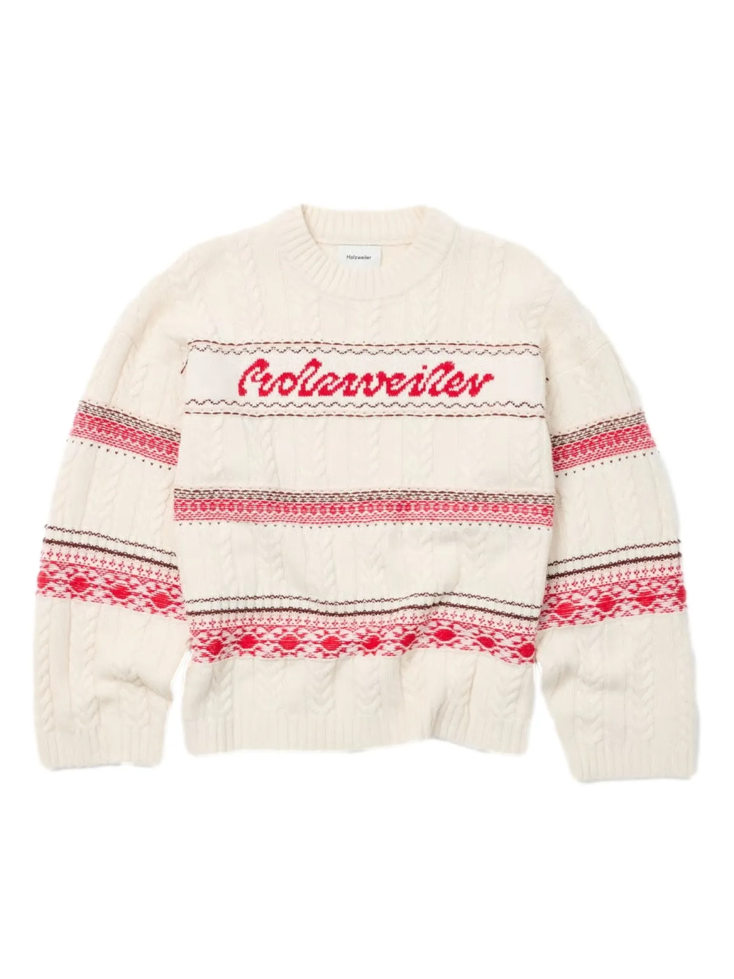 Holzweiler Logo-genseren er laget av kabelstrikk avledet av en myk blanding av bomull, kashmir og ull. I tillegg til vår logo på brystet, er design med rund hals detaljert med horisontale striper og ribbekanter.