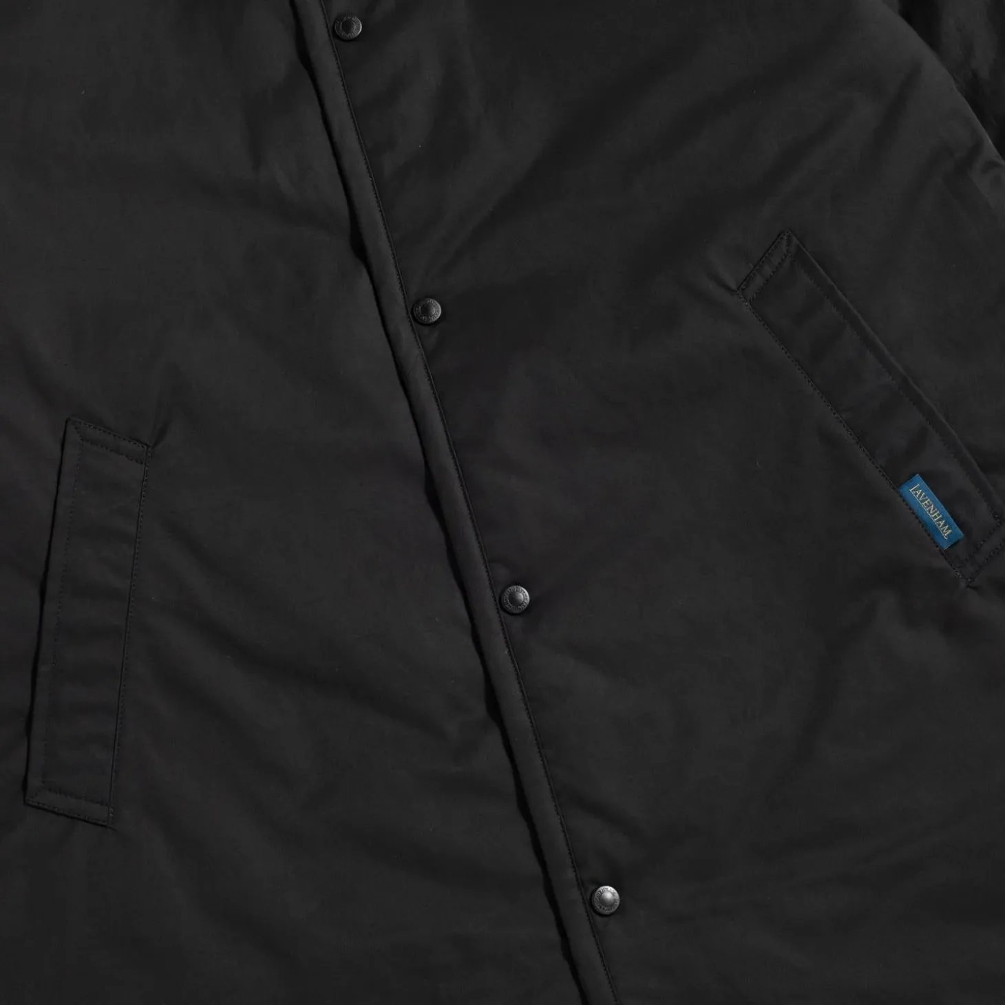 Frakk uten signaturquilting for en ren «kontur» av et av Lavenhams klassiske produkter. Stoffet som brukes er laget i Italia av Olmetex som spesialiserer seg på vannavstøtende stoffer og utfører hele produksjonsprosessen i huset. Stoffet er hovedsakelig nylon med 26% bomull som gir tekstur samtidig som det forblir vannavstøtende.