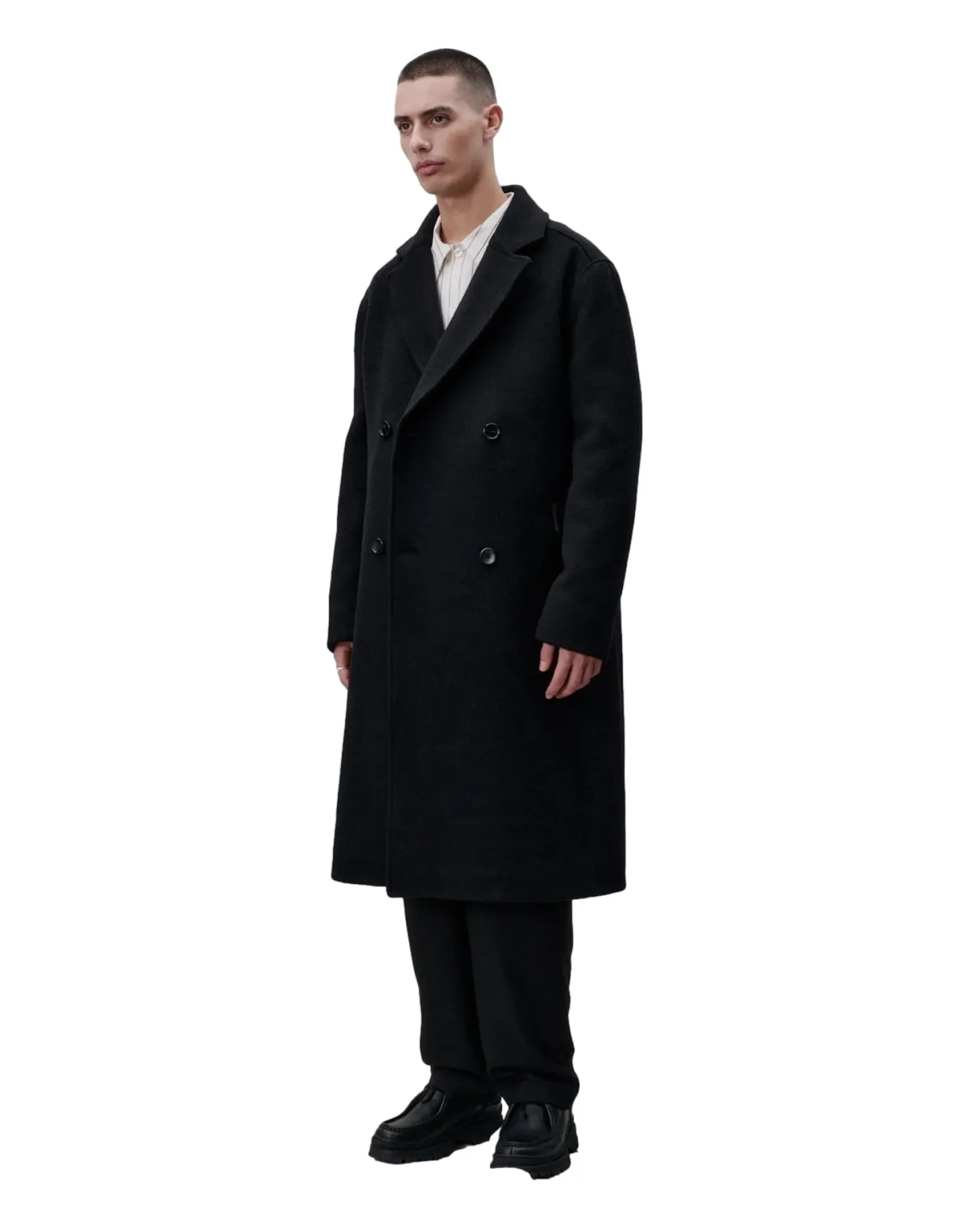 Moderne skreddersøm for allsidig bruk. Denne formelle kåpen med klassisk snitt er laget av en italiensk børstet, kraftig ull og er et klassisk libertinerplagg. Har en lett A-form med lav skulder, skrå velourlommer og en høy splitt midt bak. Kåpen er skåret under kneet, helfôret og har MEIDA-termoisolasjon.
