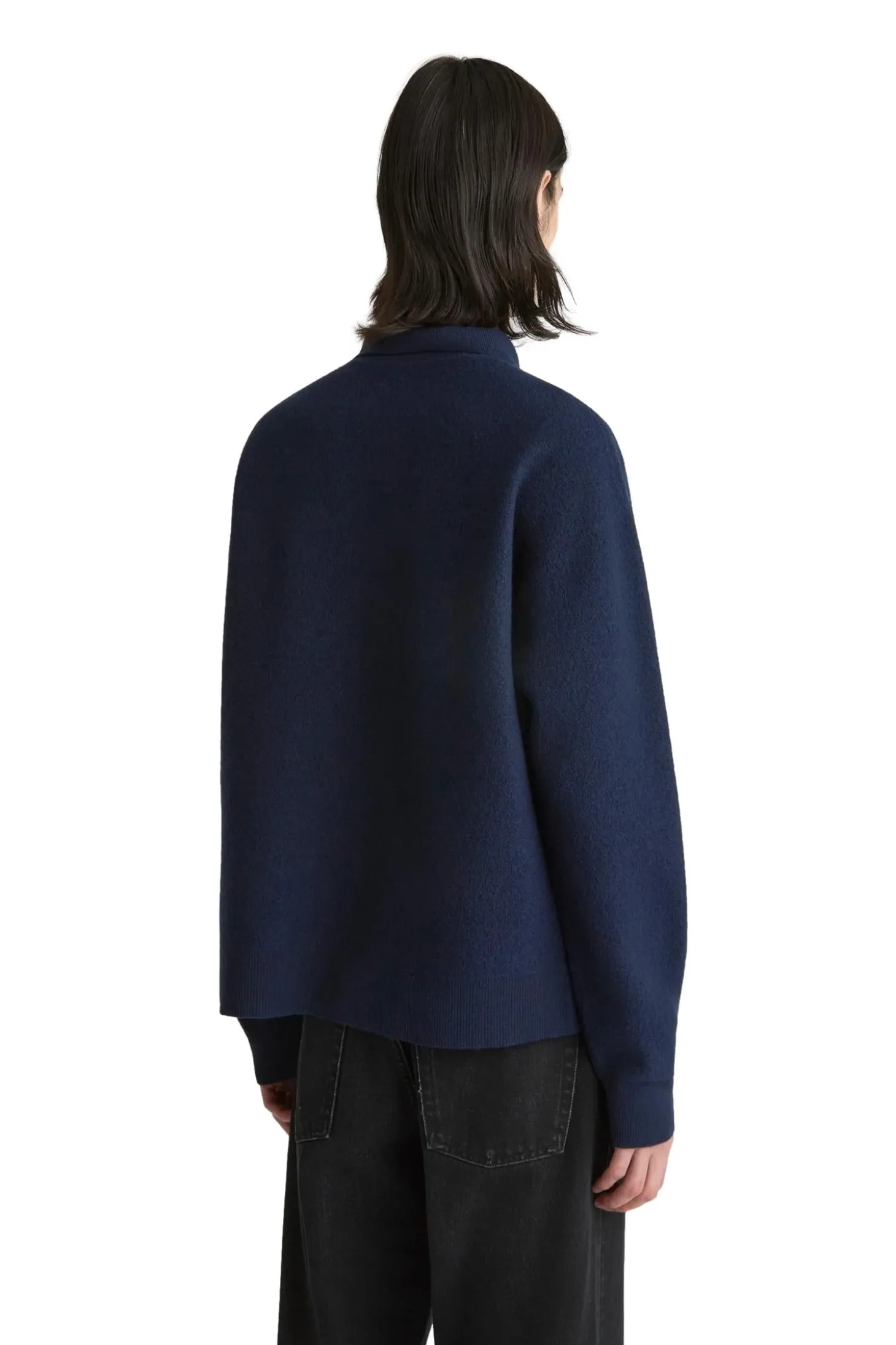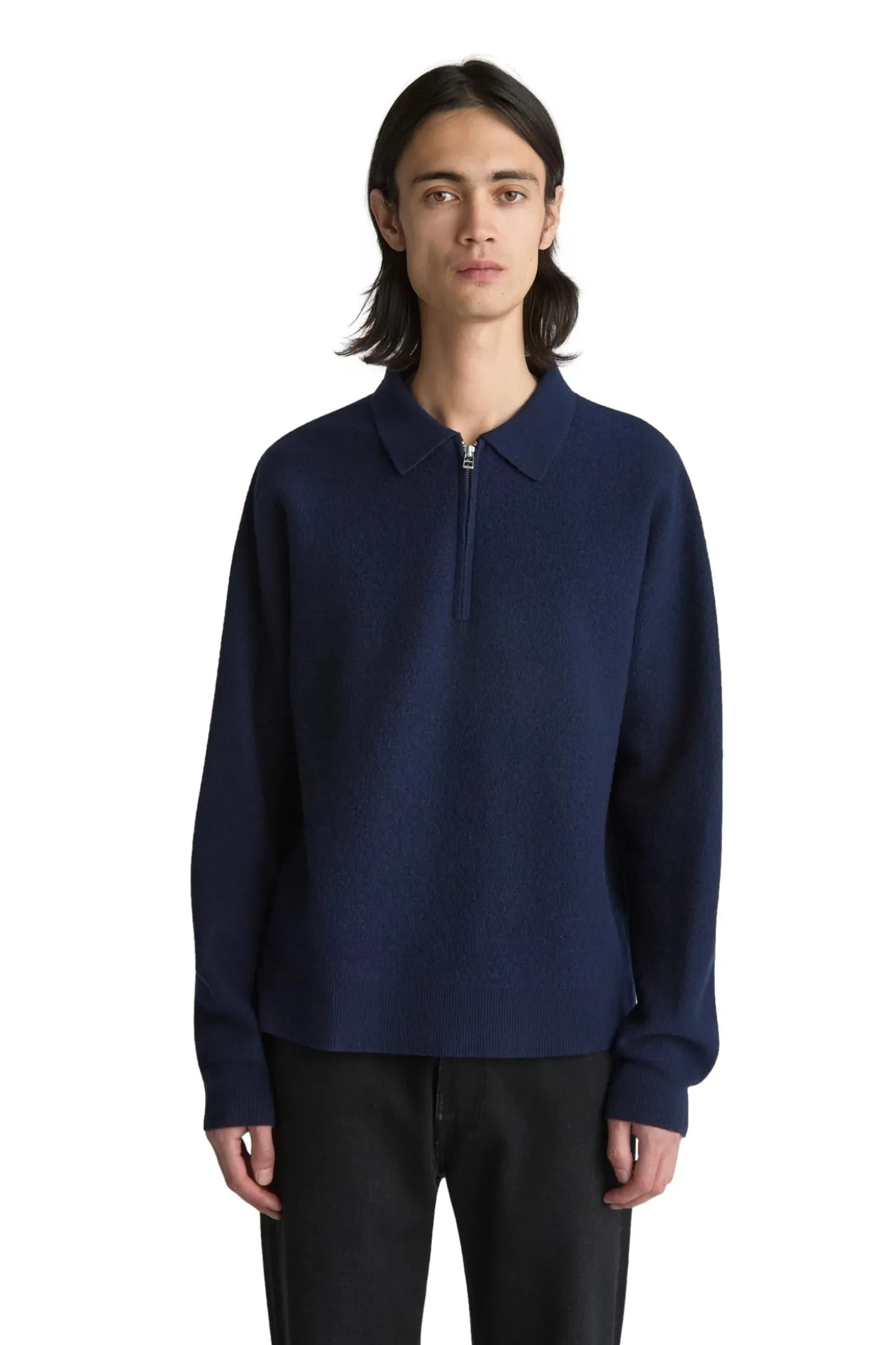Laget i ren merinoull, kokt for å oppnå en perfekt balanse mellom varme, pusteevne og mykhet. Vekten av den kokte merinoullen gir Kevin-genseren med kvart glidelås et mykt og tungt fall.
