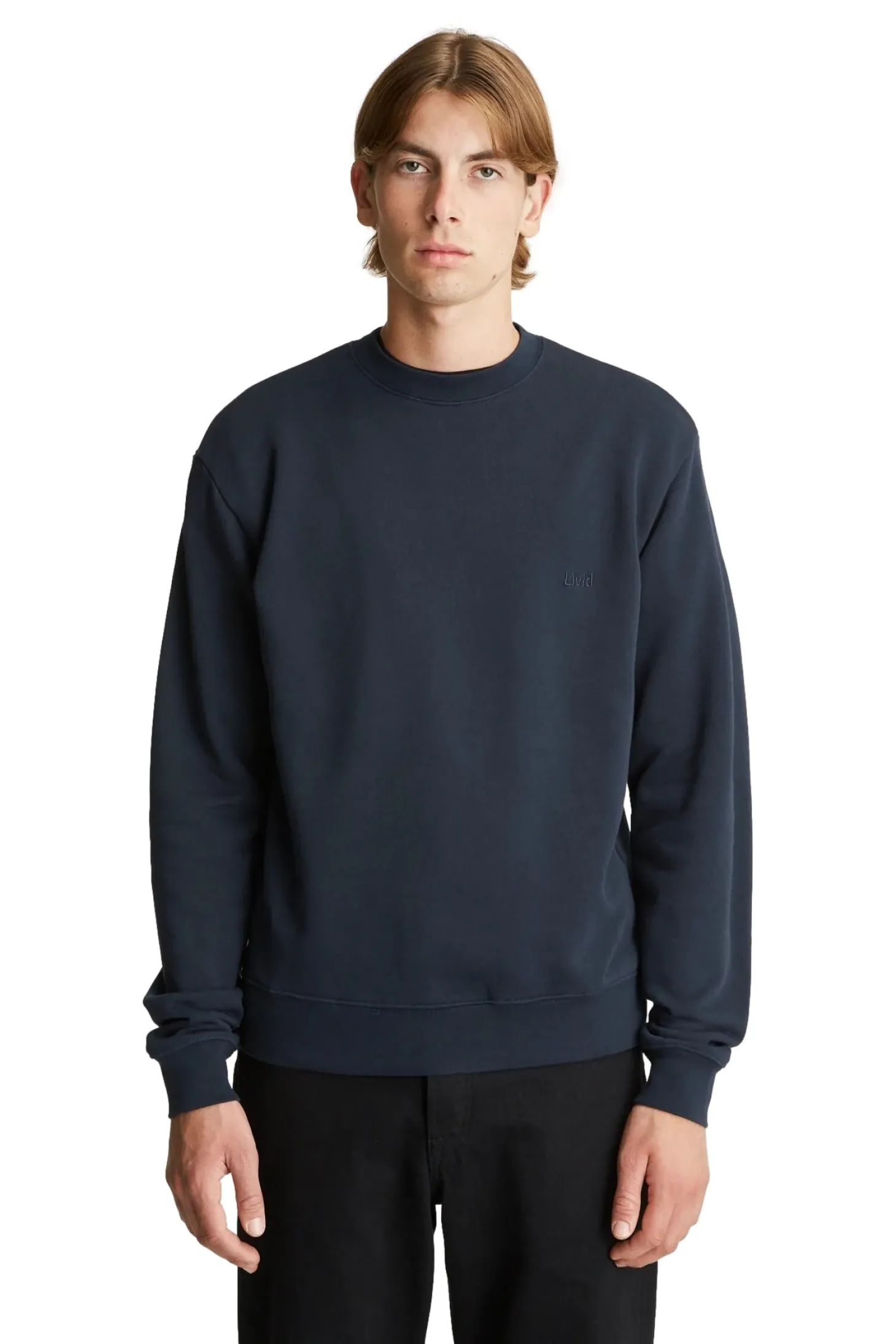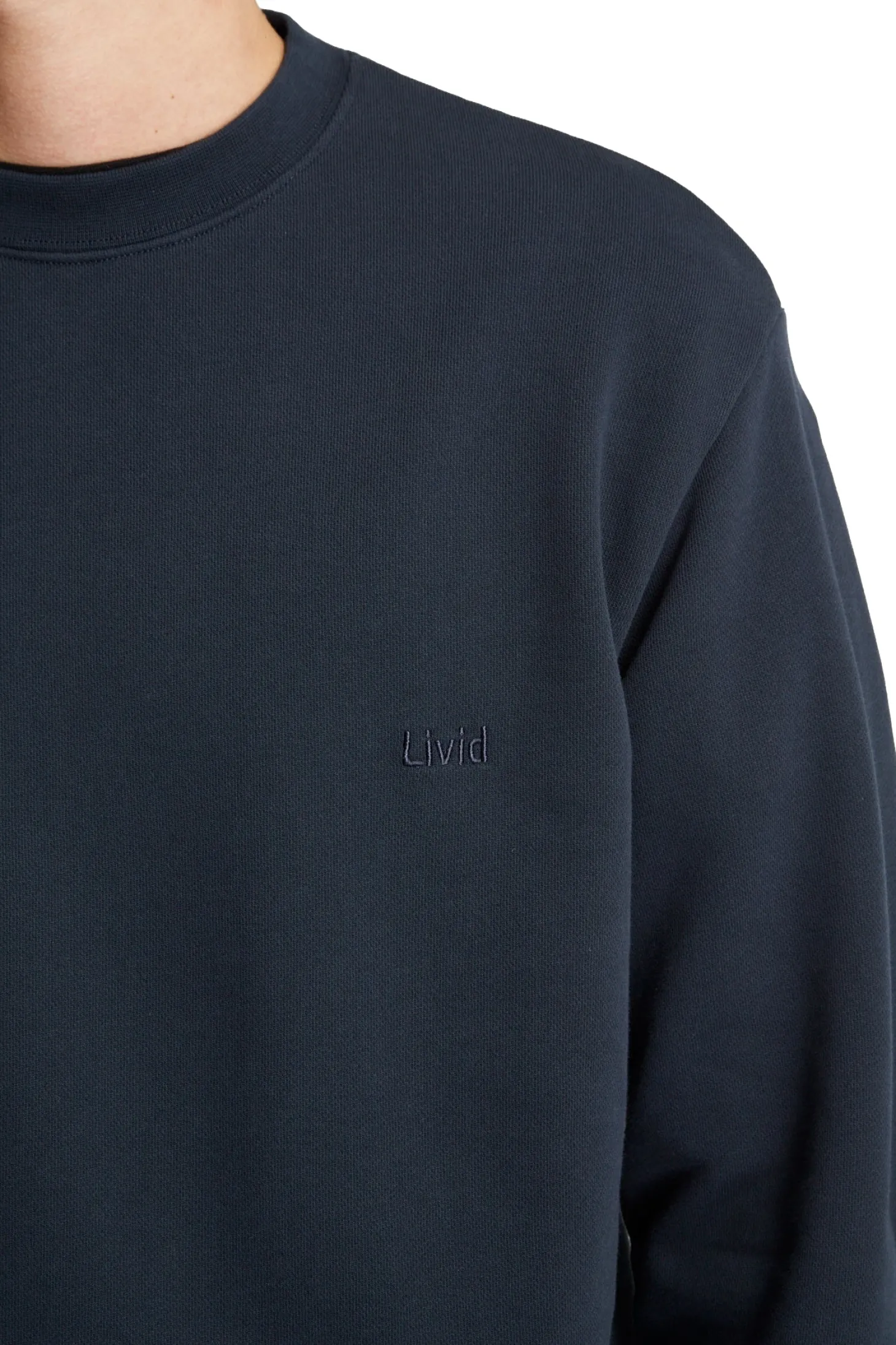 Longsleeve genser med rund hals i ferdigkrympet kvalitet. Brodert ton i ton logo på brystet.