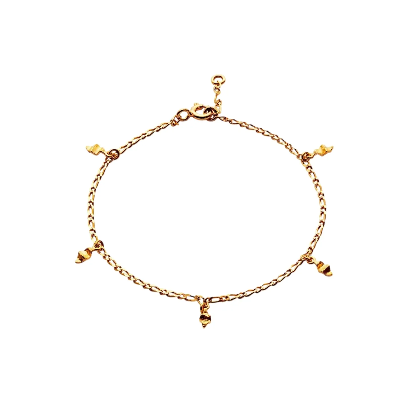 Armbånd med små hammersbankede vedheng satt på det elegante figaros kjede. Materiale: Sterling sølv (925) belagt med 18 karats gull.