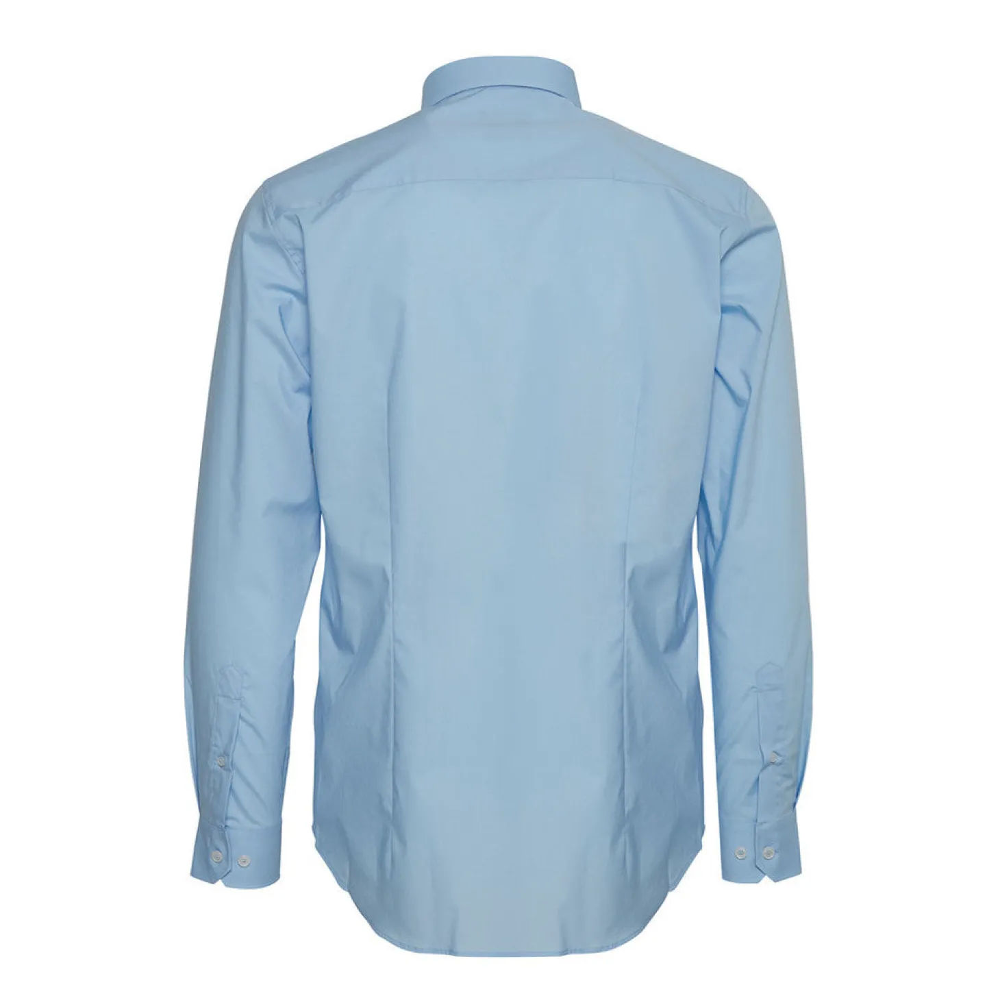 En ideell skjorte for slimfit-dresser. Skjorten er med stretch og har en smal, tilsittende passform. Klassisk og moderat snipp, med matchende knapper og avrundede mansjetter.