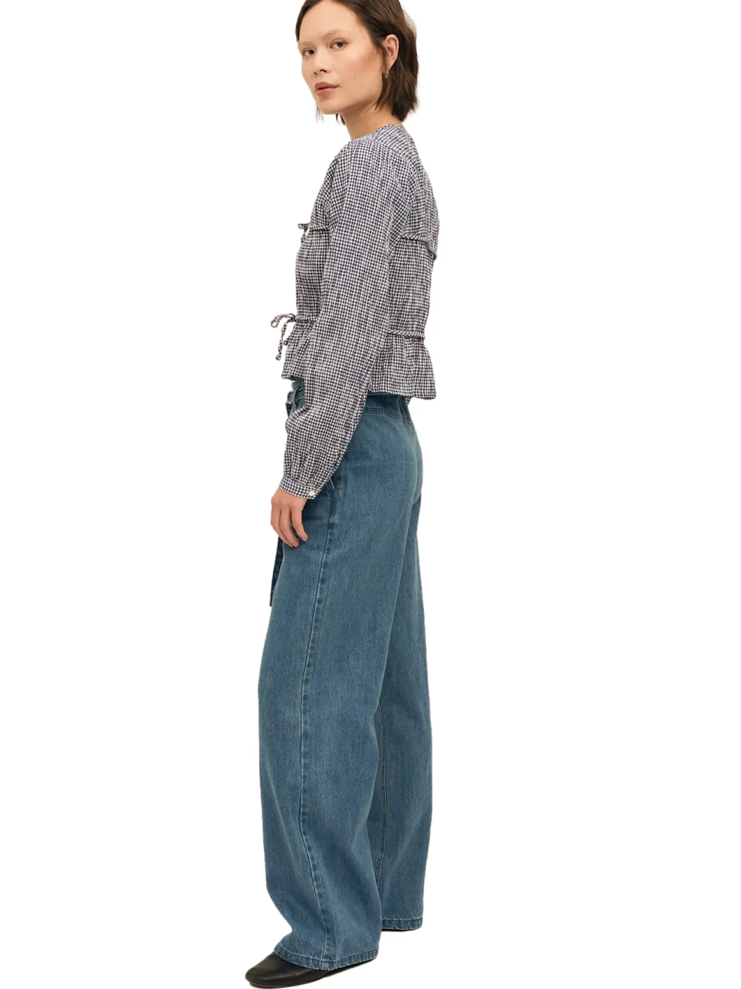 Indiana stringblusen er en flatterende bluse med et klassisk rutete mønster og doble knytedetaljer foran, denne blusen gir en leken vri på garderoben din. Skjorten har V-utringning, og lett oppblåste skuldre.