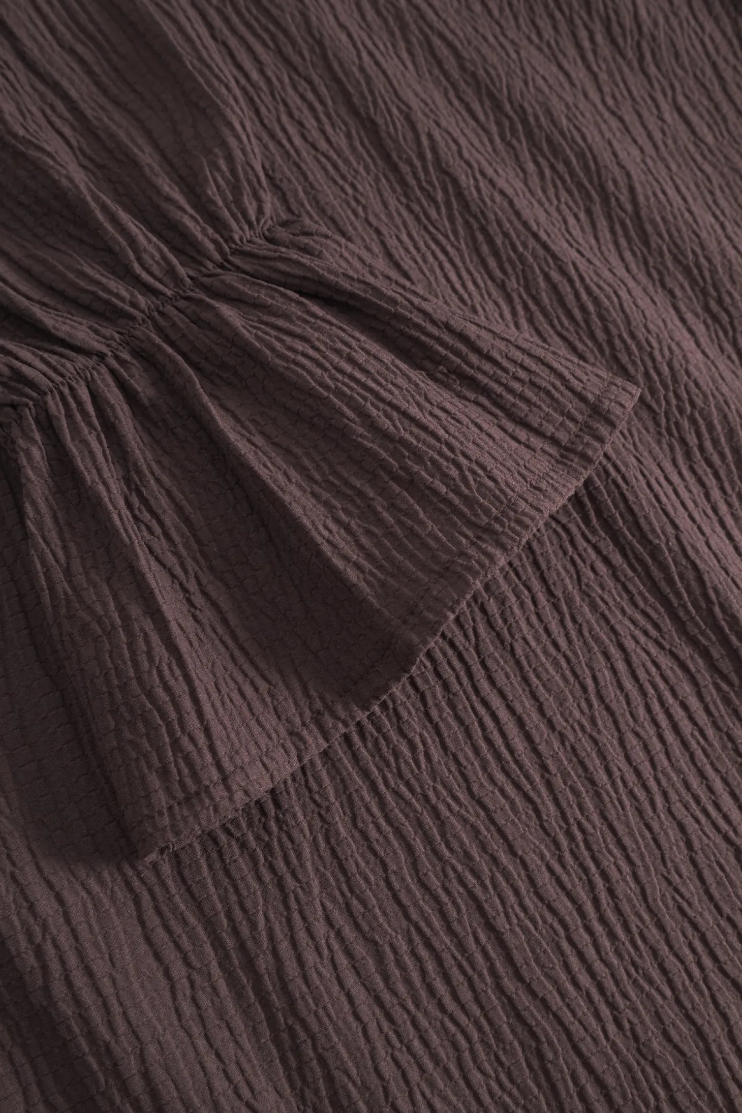 Mercer-bluse er en ensfarget bluse med lange, voluminøse ermer, lett puffede skuldre og en rett passform. Blusen har en avrundet halsringning og en knapp bak, og en lengde som går rett over hoftene.