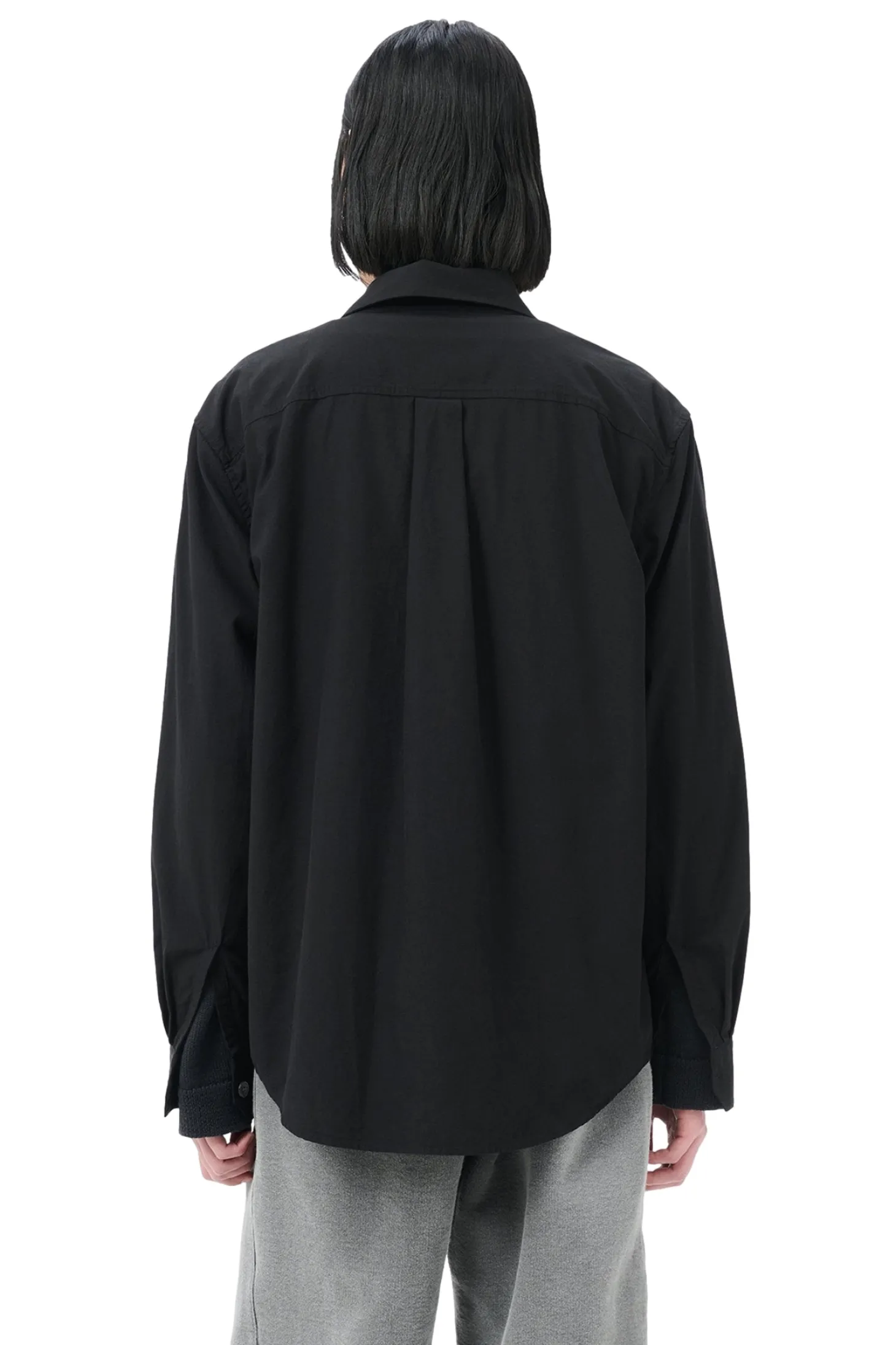 Beyond-skjorte i svart, casual Liquid Poplin. Produsert i kinesisk poplinstoff laget av lyocell og bomull, har denne Beyond-skjorten for menn en vanlig, rett passform med perleknapper, en buet kant og rett kroppskonstruksjon.