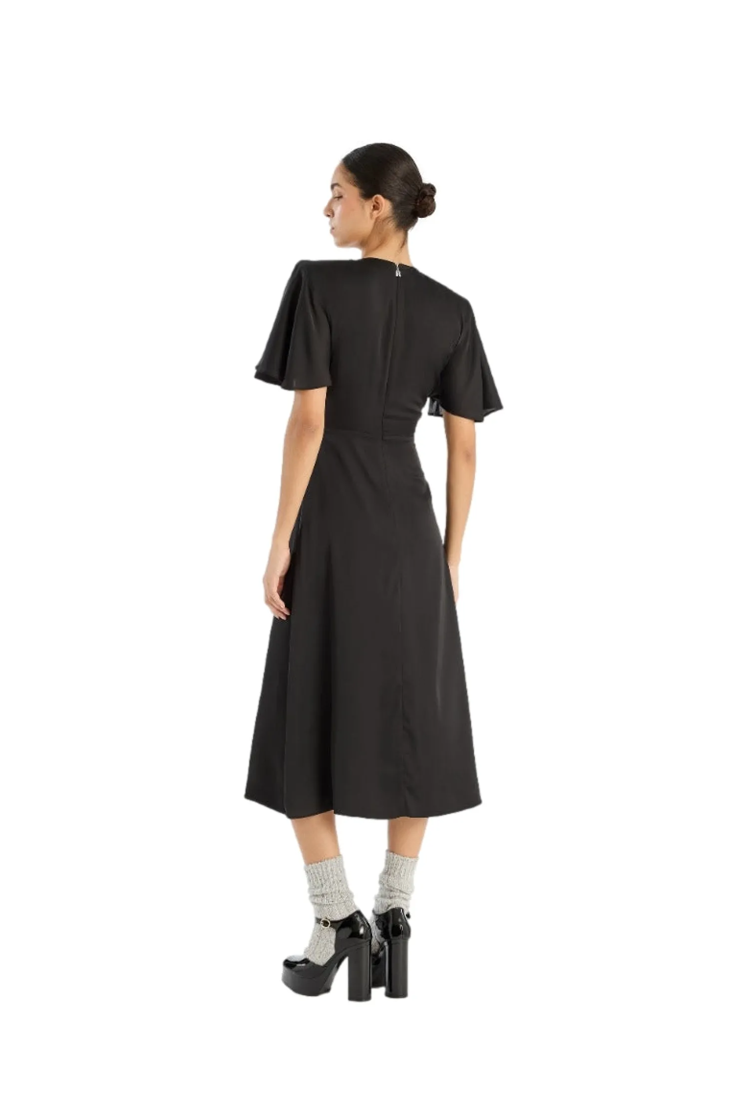 Chiffon Midi-kjolen i svart har rund hals og mykt utsvingte korte ermer.