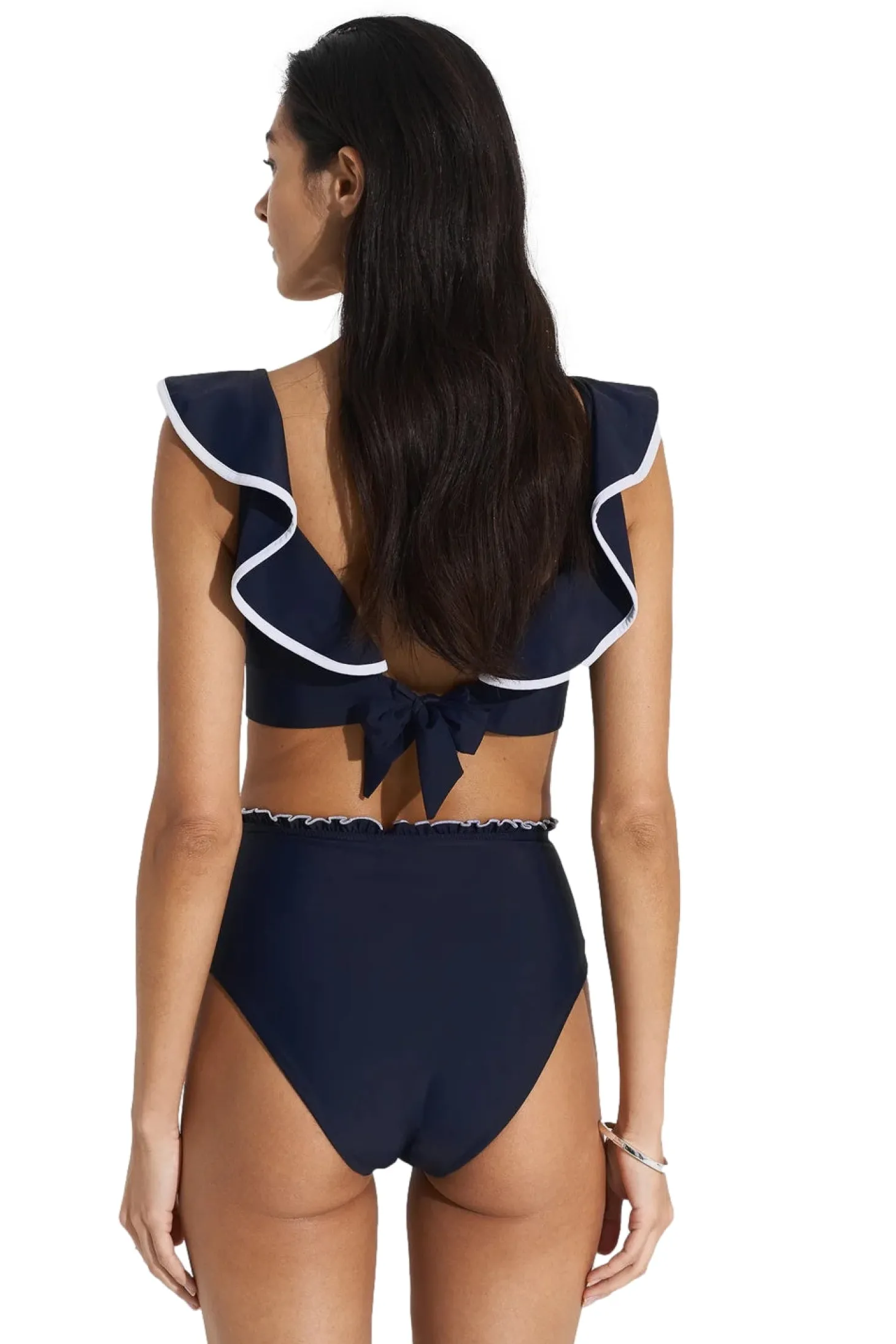 Bikinitopp med frynsete kanter og knyting i front.