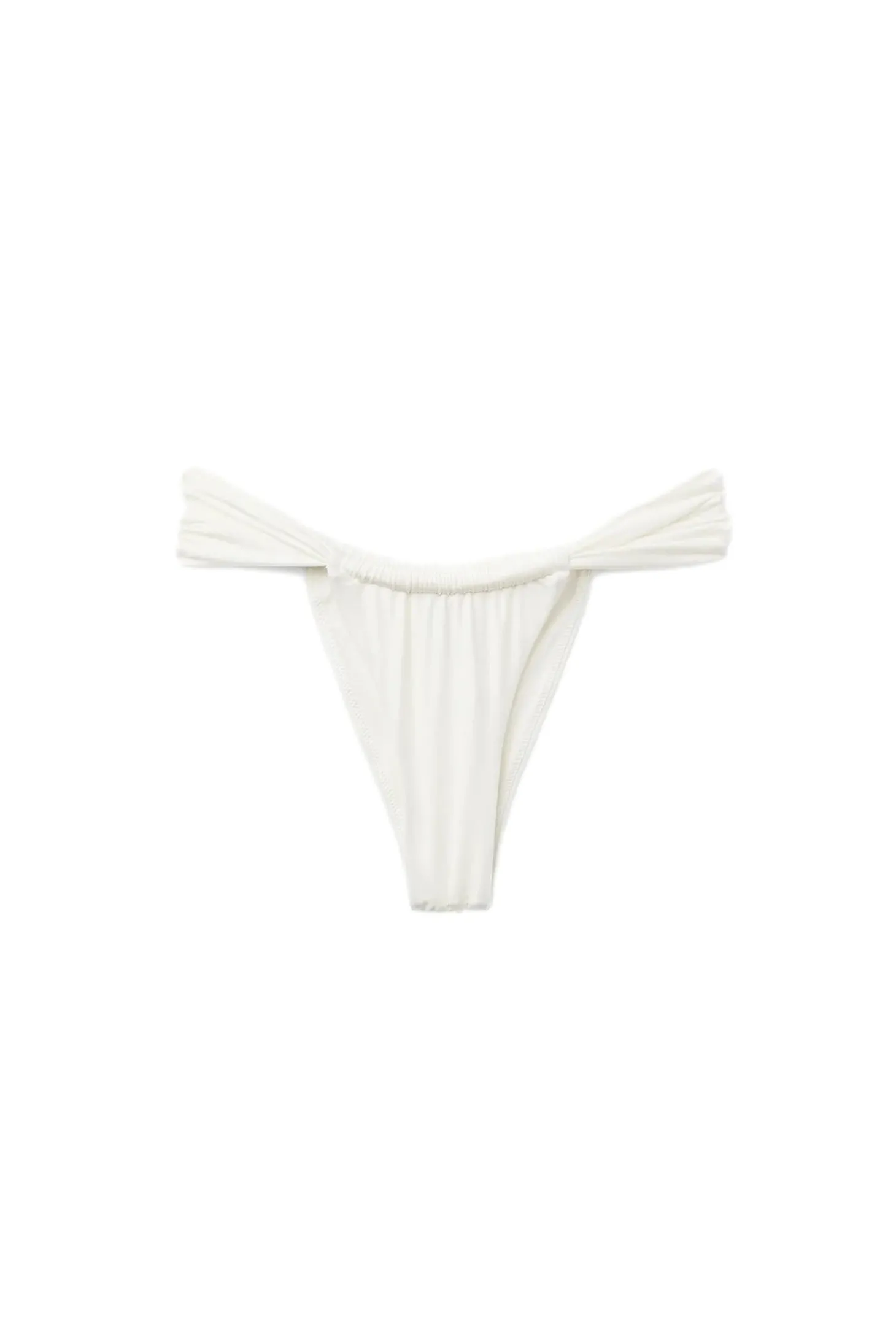 Designet for å sitte høyt på hoftene, med rynket foran og bak. Denne allsidige stilen kan brukes med varierende dekning bak. Laget av ultramykt førsteklasses italiensk stoff, og har en vakker skimmereffekt.