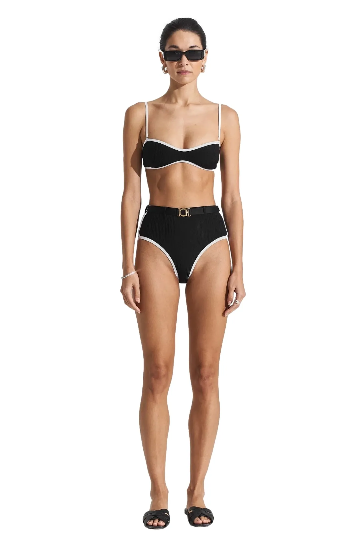 Seaquelle Ribbed Bikini Top Badetøy Sort Og Hvit