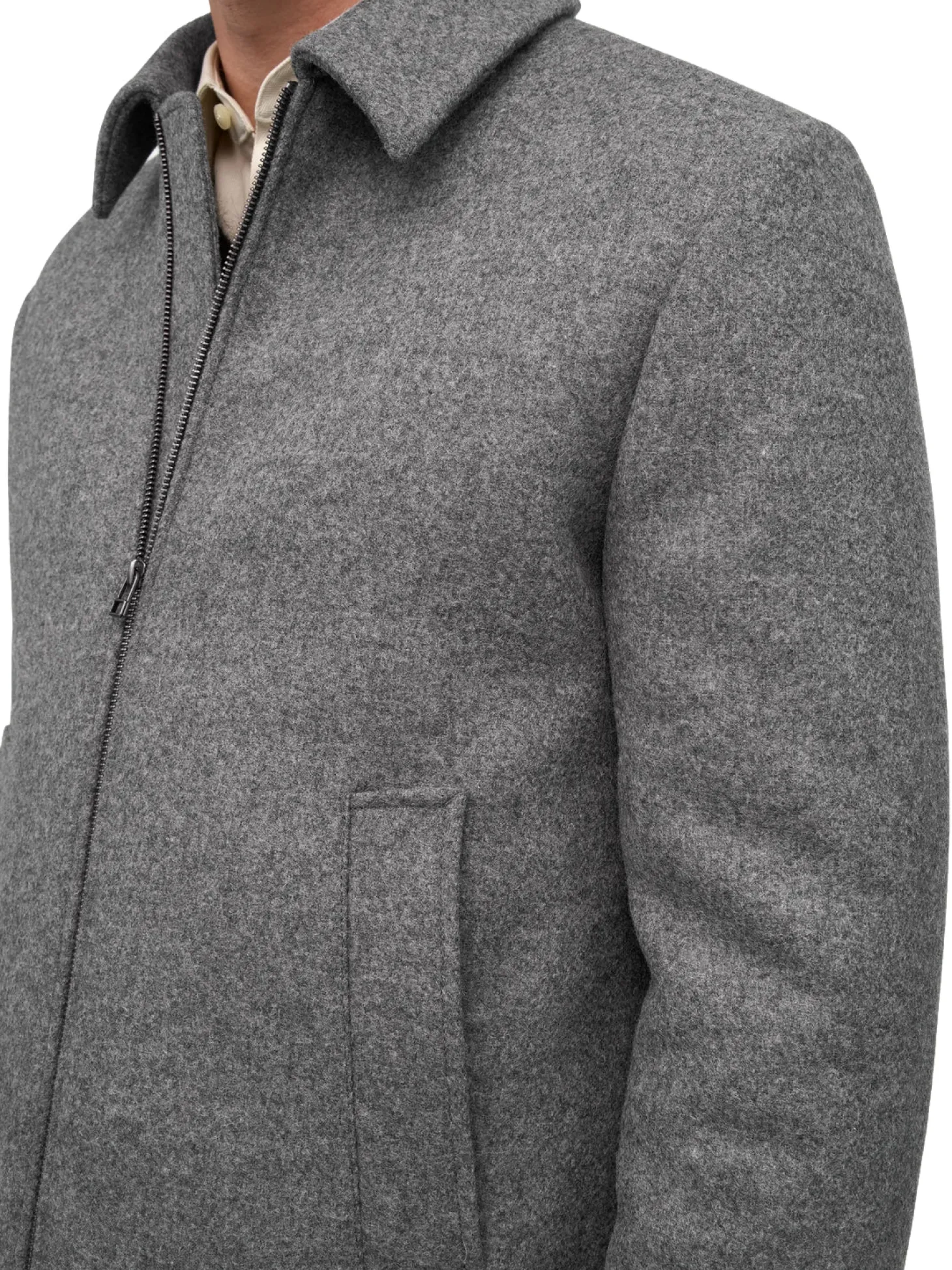 Ulljakke med spiss krage og stikklommer i smal passform.