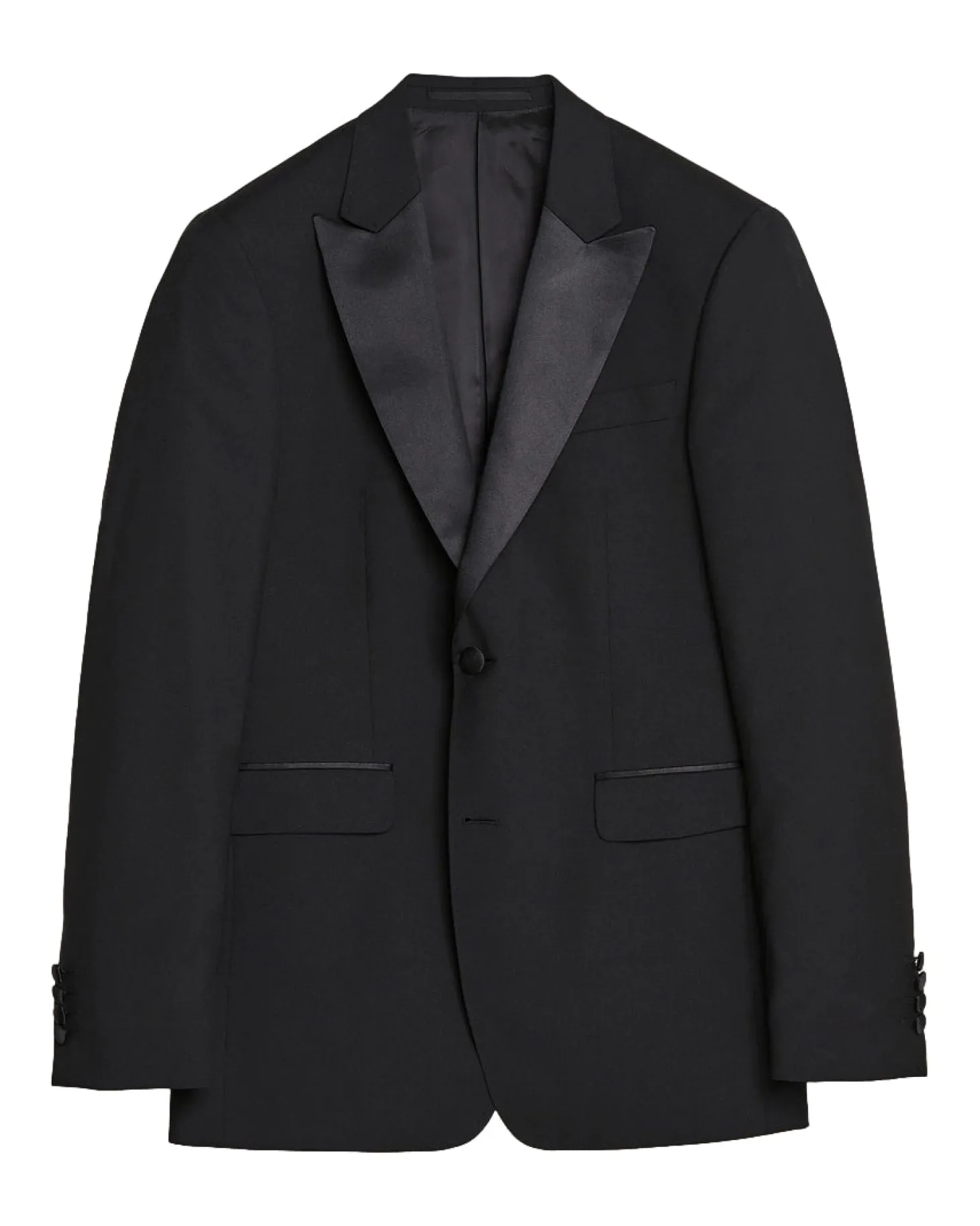 Helforet smokingblazer i smal passform. Slag, knapper og kantbånd i silke.