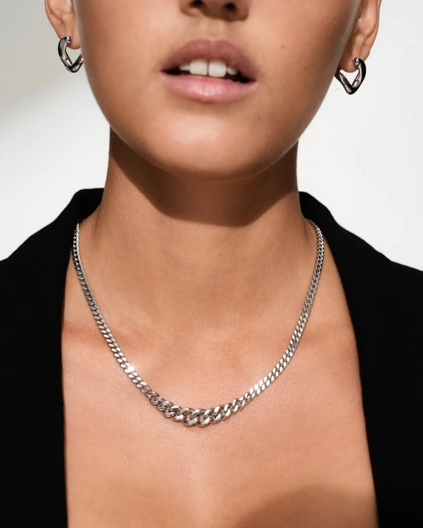 Dean Hoops er en leken versjon av en klassisk bøyle, som henter inspirasjon fra en enkelt fortauskantslenke og modifiserer den til et par dristige skulpturelle øredobber.