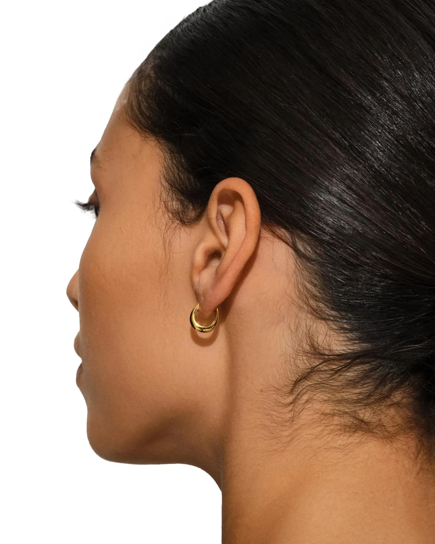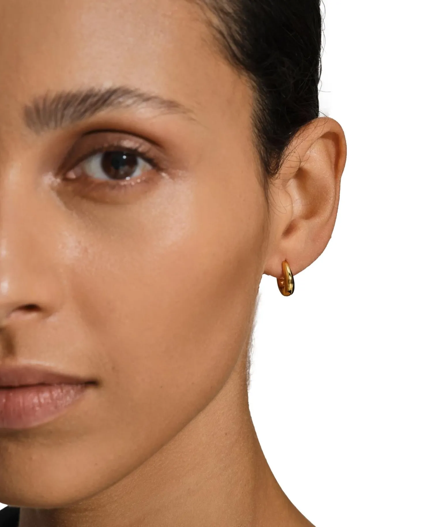 Et par delikate Huggies-smykker, laget av 925 sterlingsølv med polert 18 karat gullbelegg. Alle edle metaller er 100 % resirkulert.