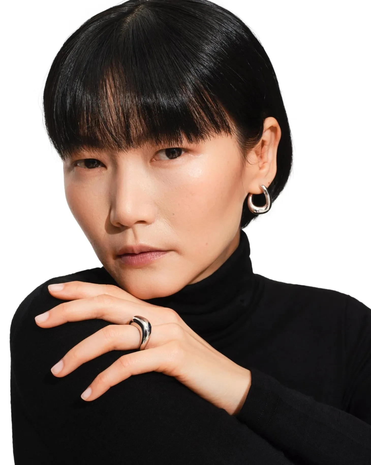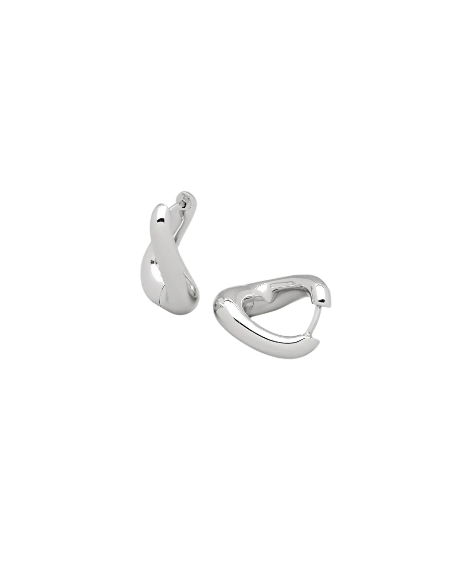 Et par klassiske ringer i vridd form, laget av 925 sterlingsølv med polert hvit rhodiumbelegg.