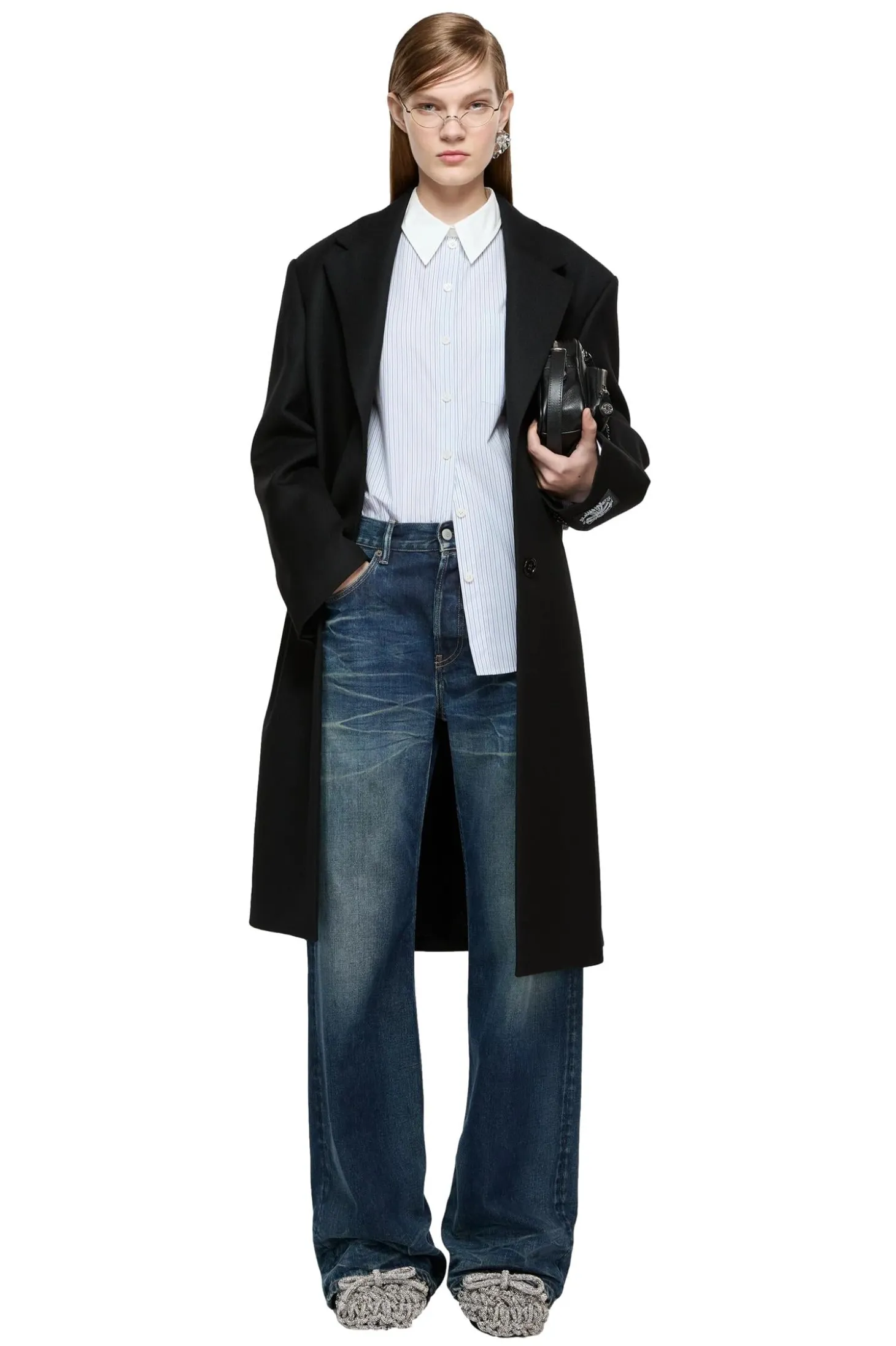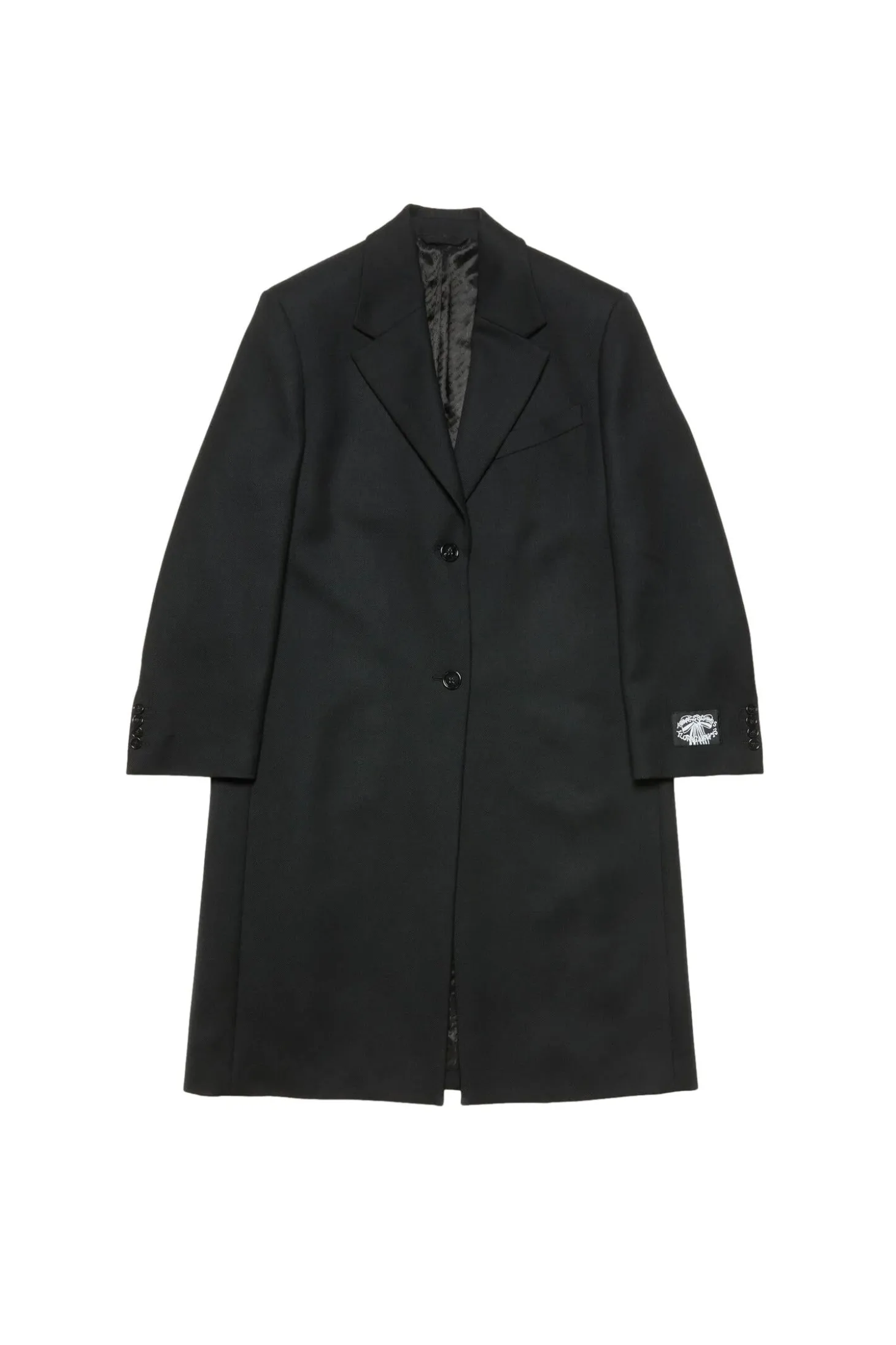 Enkeltspent kåpe er laget av kraftig skreddersydd ull med en vevd twillstruktur og kraftig drapert finish. Detaljert med en Acne Studios-logoetikett på mansjetten.