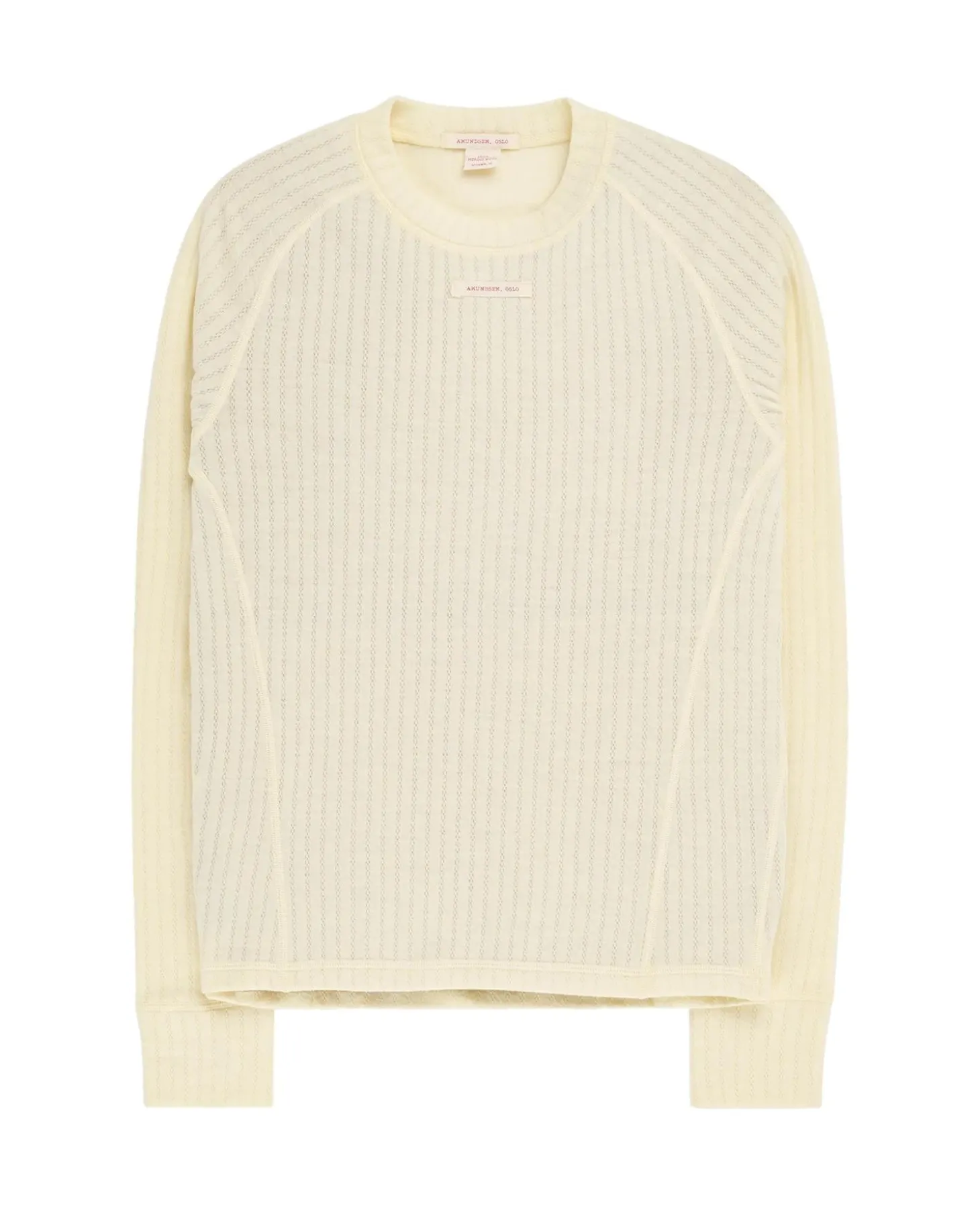 Strikket genser med rund hals og logo på brystet. Smal passform.