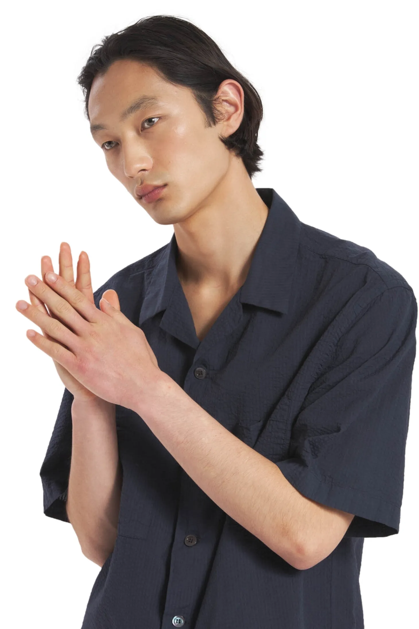 Kortermet skjorte med bowlingkrage og brystlomme.