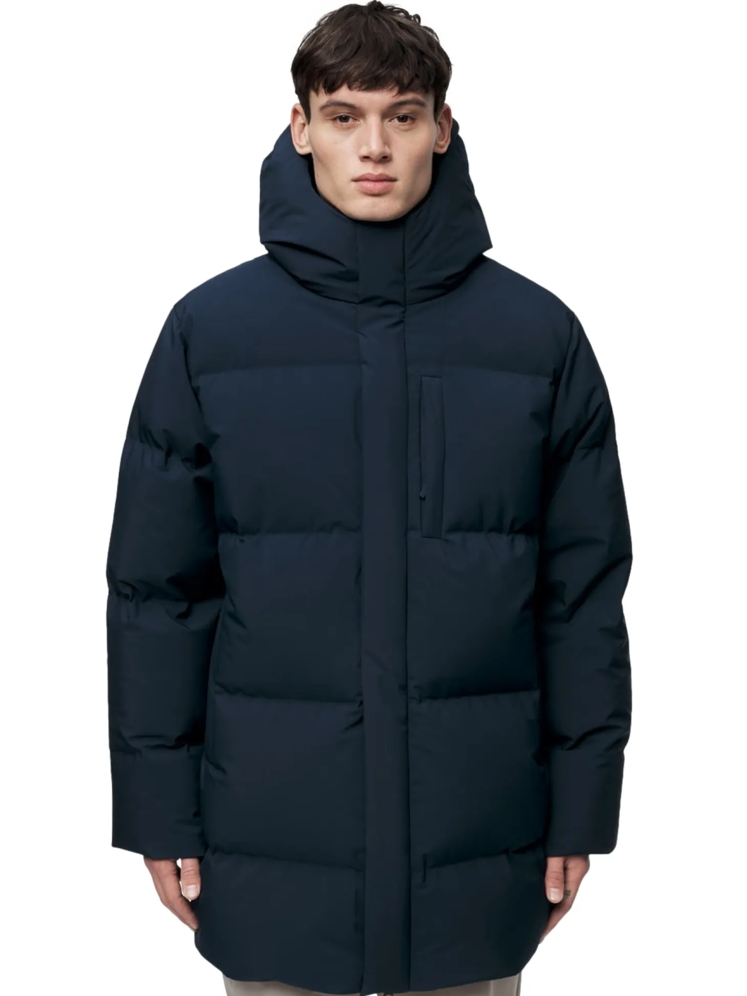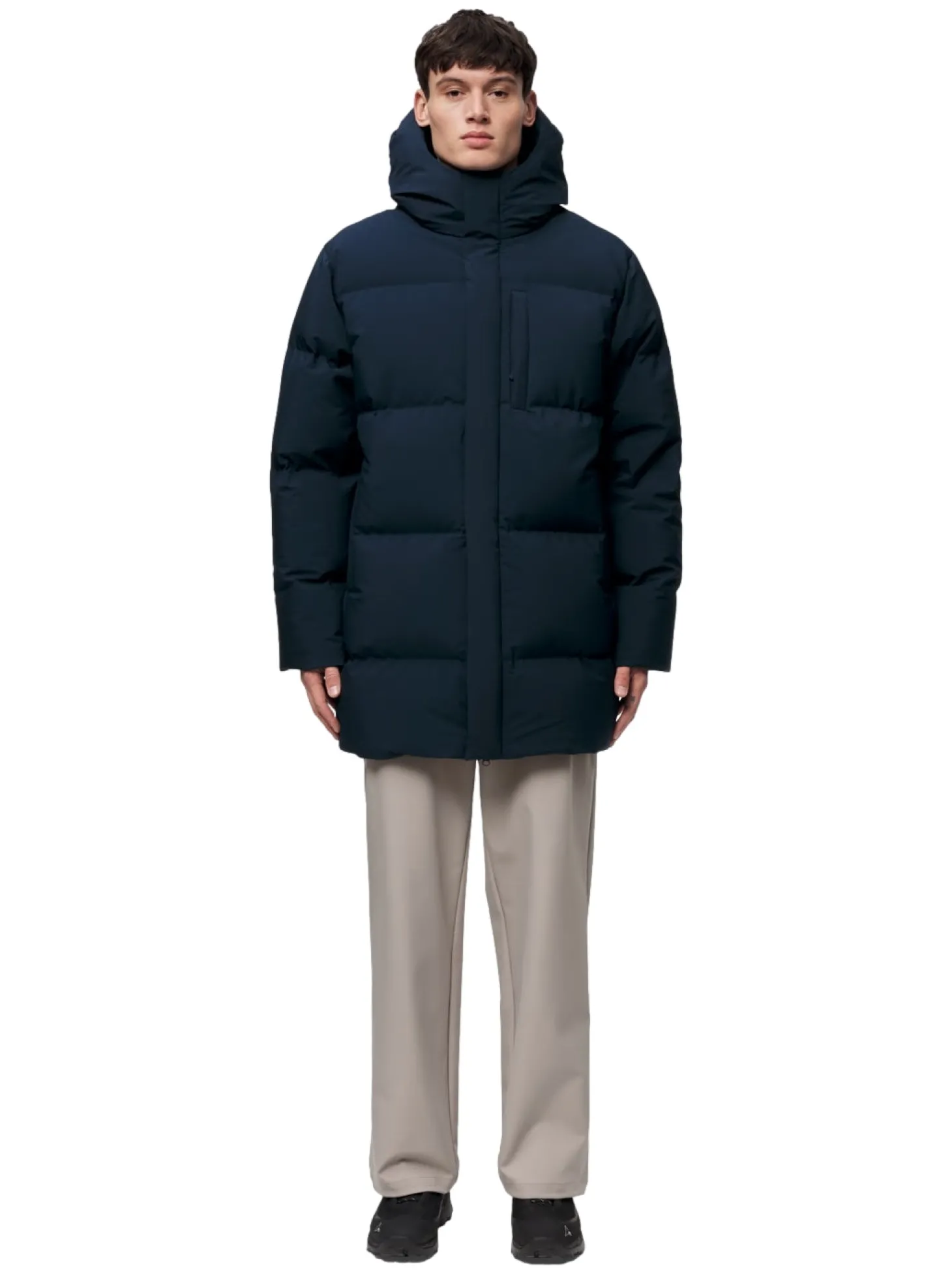 For å forbedre synligheten i dårlige lysforhold har dunjakken en ton-i-tone reflekterende logo trykt på brystet.