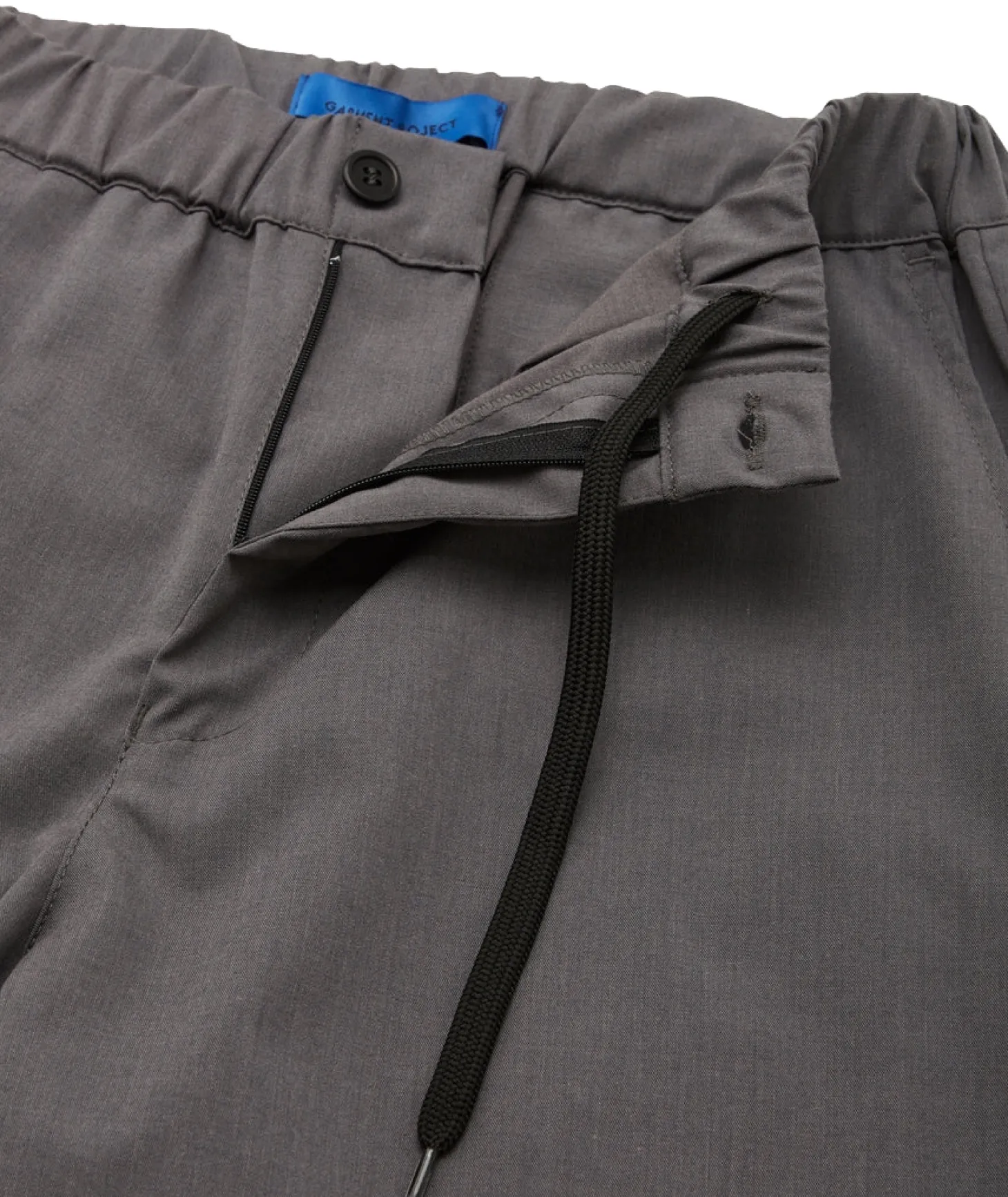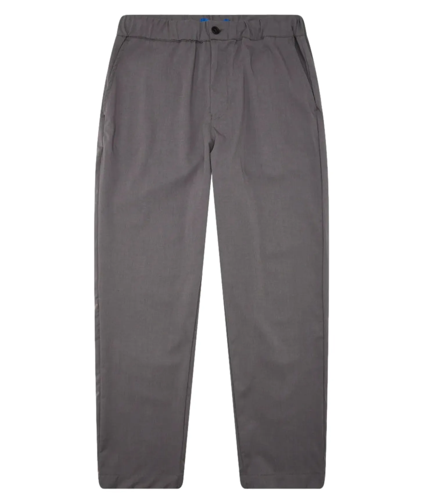 Laget av 78 % polyester, 18 % viskose, 4 % elastan