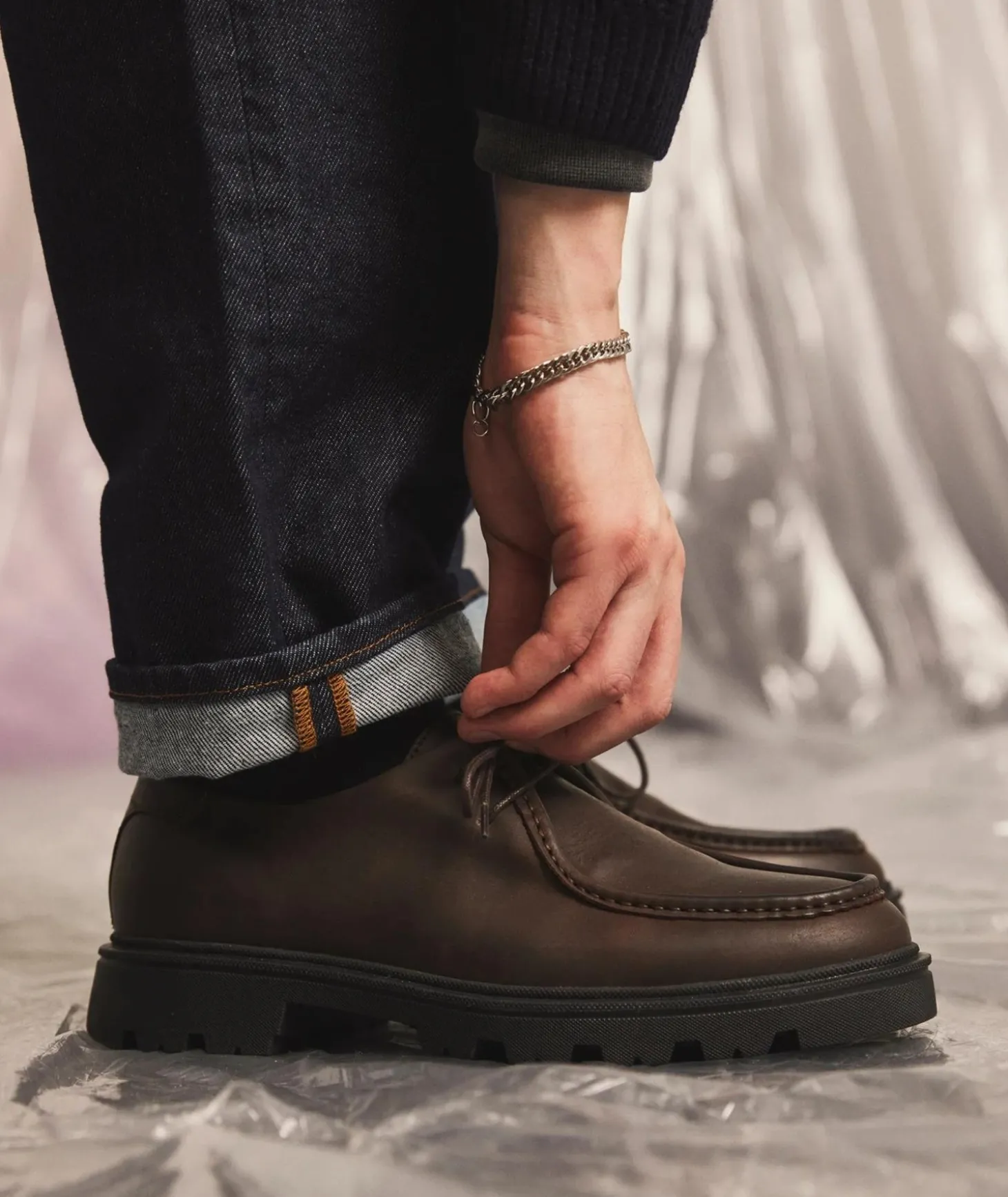 – Håndsydd moc toe-detalj