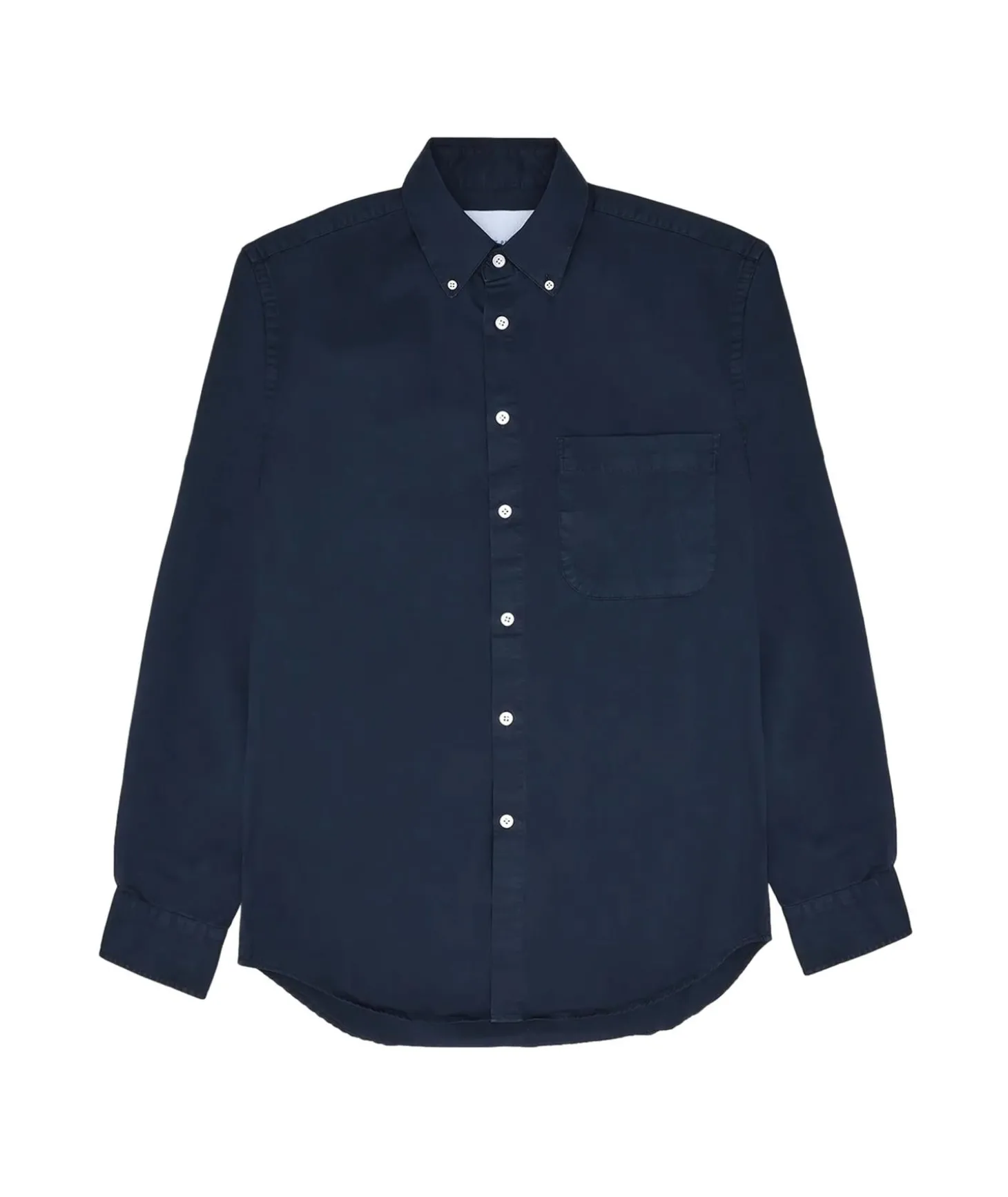 Avslappede LS Button Down-skjorte er designet for å ha en balansert, avslappet passform som er litt oversized, men fortsatt har perfekt passform. Skjorten har en brystlomme, button-down-krage og en minimalistisk stolpe foran. Skjorten er laget av italiensk 280 grams bomullstwill av høy kvalitet. Den litt tyngre bomullstwillen med effekten av plaggfarging gjør denne skjorten klassisk, men samtidig avslappet.