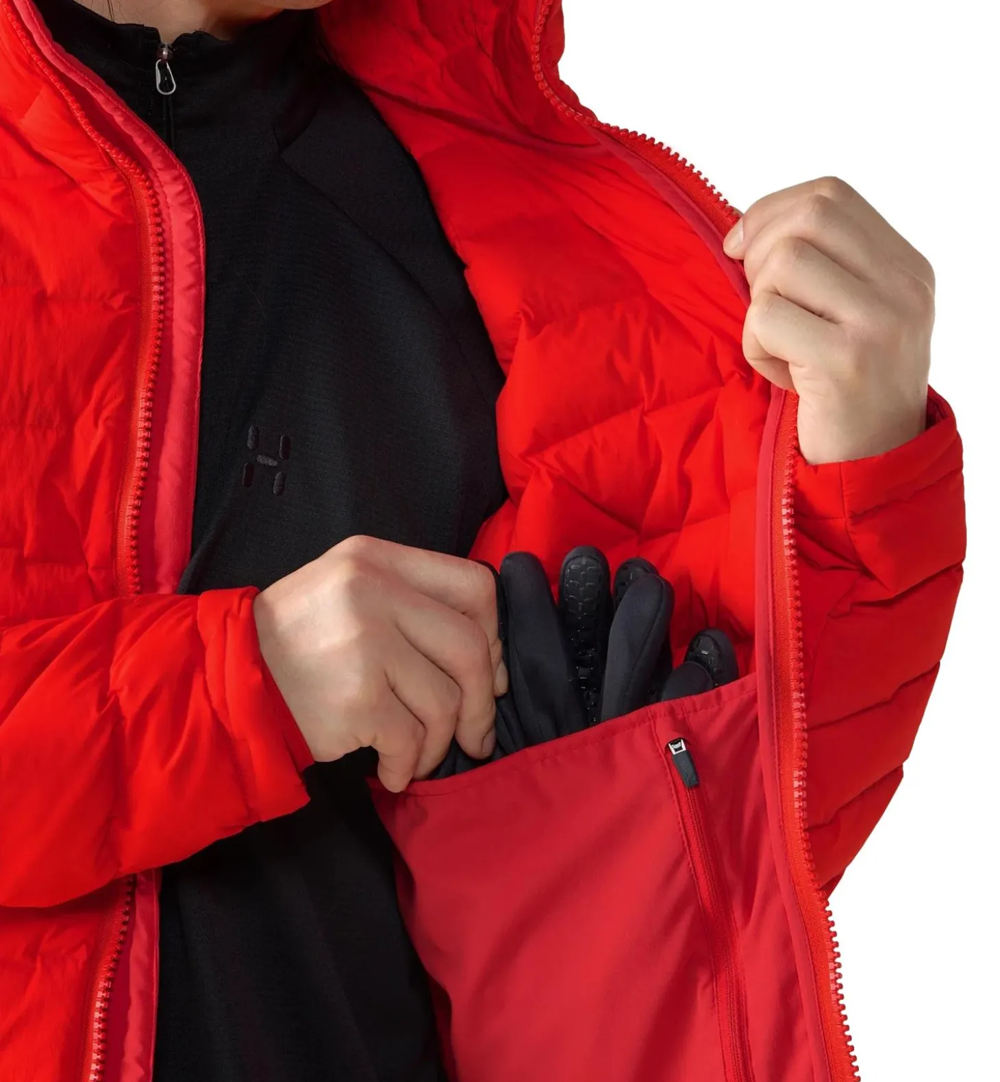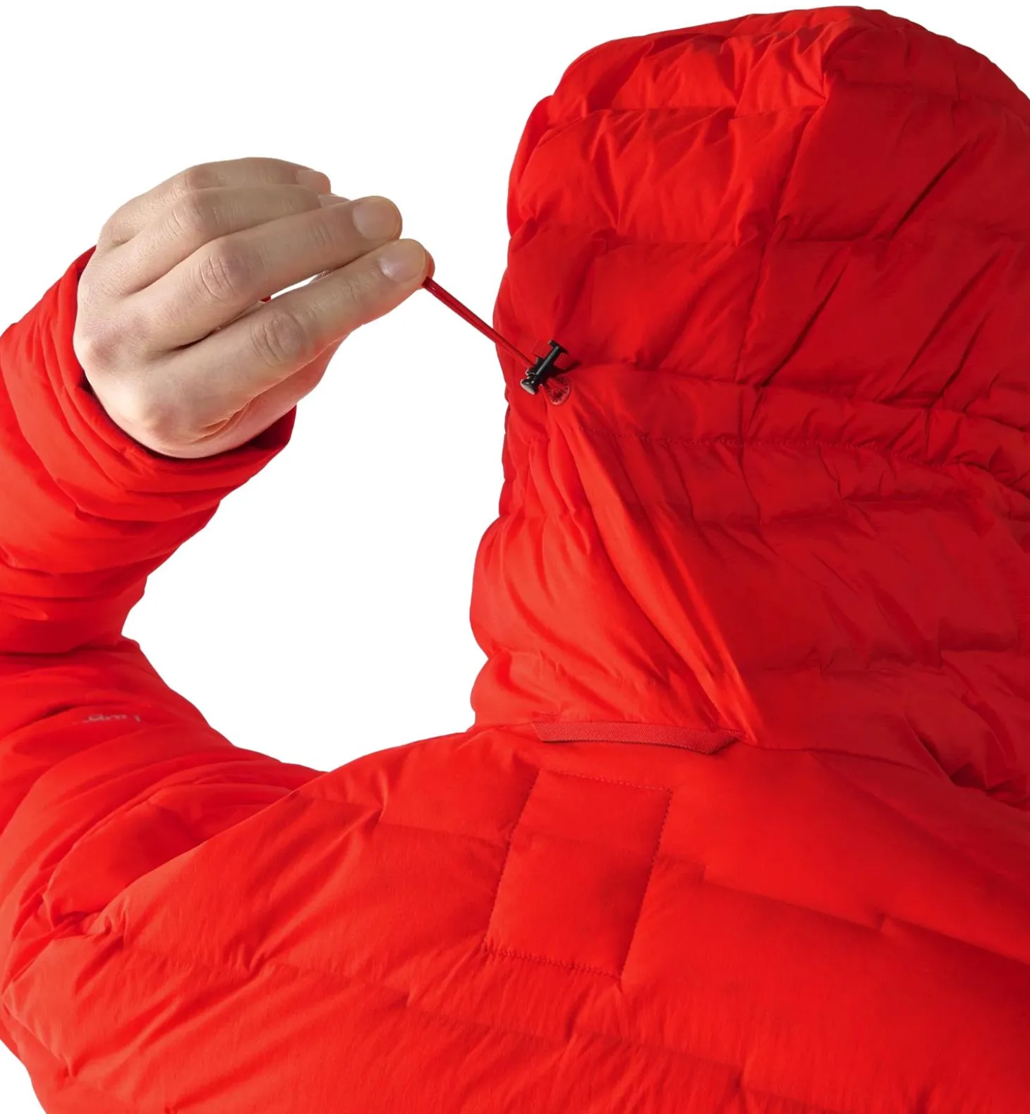 En elastisk hettegenser med dun som gir stabil varme i våte fjellforhold. Den er designet med fokus på kravene ved fjellklatring og klatring. Den er laget av et tøft og vannavstøtende ytterstoff med toveis stretch og er fylt med H DOWN Platinum med 800 CUIN fyllevne, et hydrofobisk gåsedun som holder seg tørt i opptil 10 000 minutter med eksponering for våte forhold. Den høyteknologiske platekonstruksjonen forhindrer kalde flekker på effektivt vis, takket være det brede, forhåndsvevde og sømløse designet. Den er utstyrt med en isolert, hjelmkompatibel hette som gir maksimal beskyttelse.