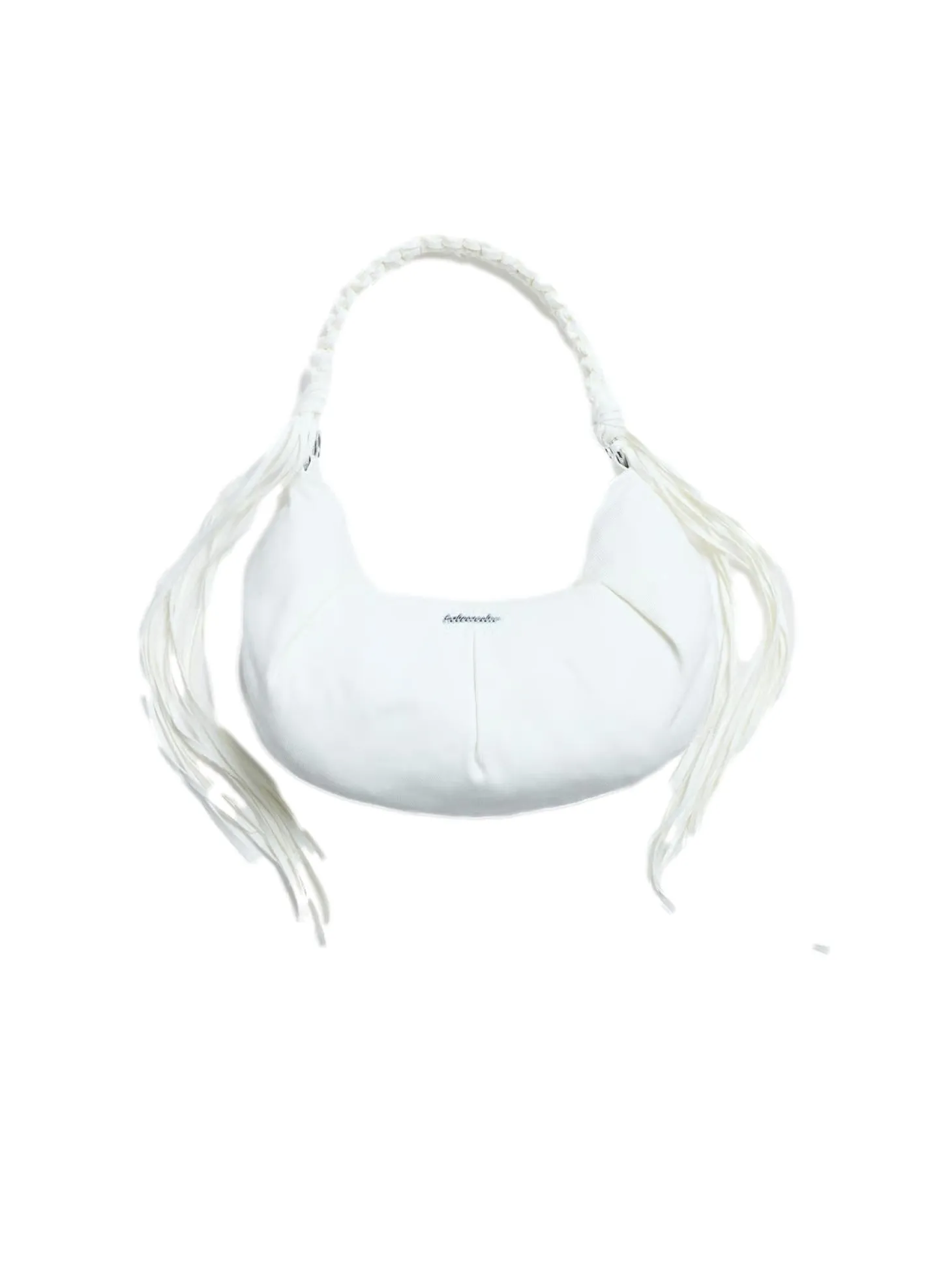 Cocoon Small-vesken er laget av denim, og har en slank design med krøllede detaljer. Den henger fra en flettet stropp som er ferdig med duskkanter.
