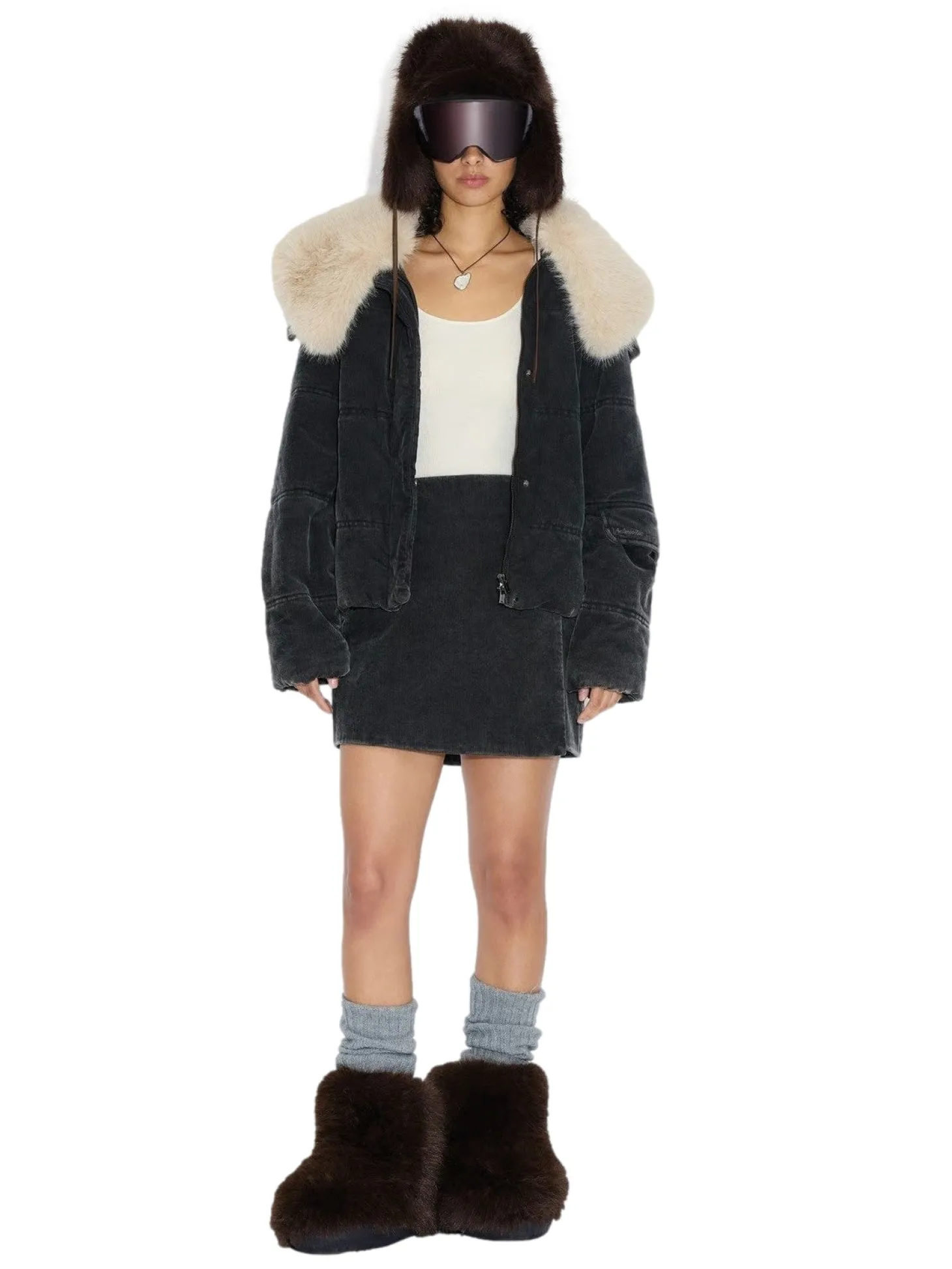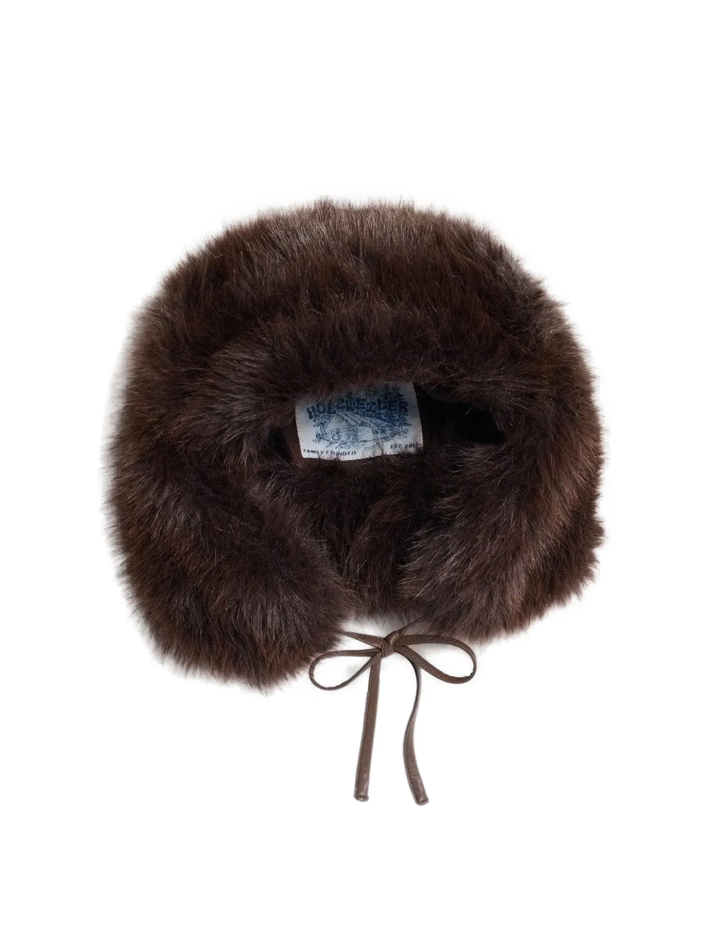 Furry Trapper-luen er laget av myk fuskepels, fôret med sateng og festet med stropper i fuskeskinn.