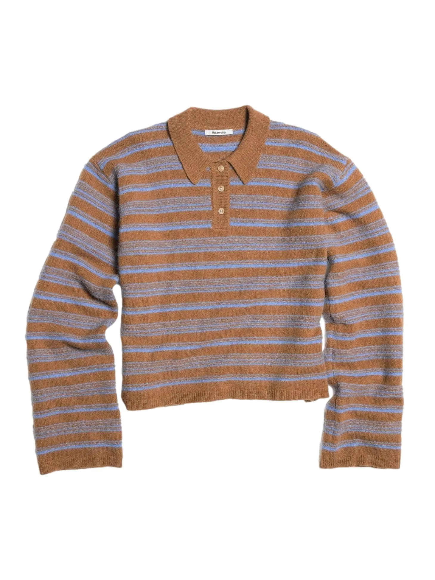 Olivia-ullpoloskjorten er laget av et taktilt stripete strikkemateriale og har en avslappet passform. Den har en knappet polokrage og klokkeformede ermer.