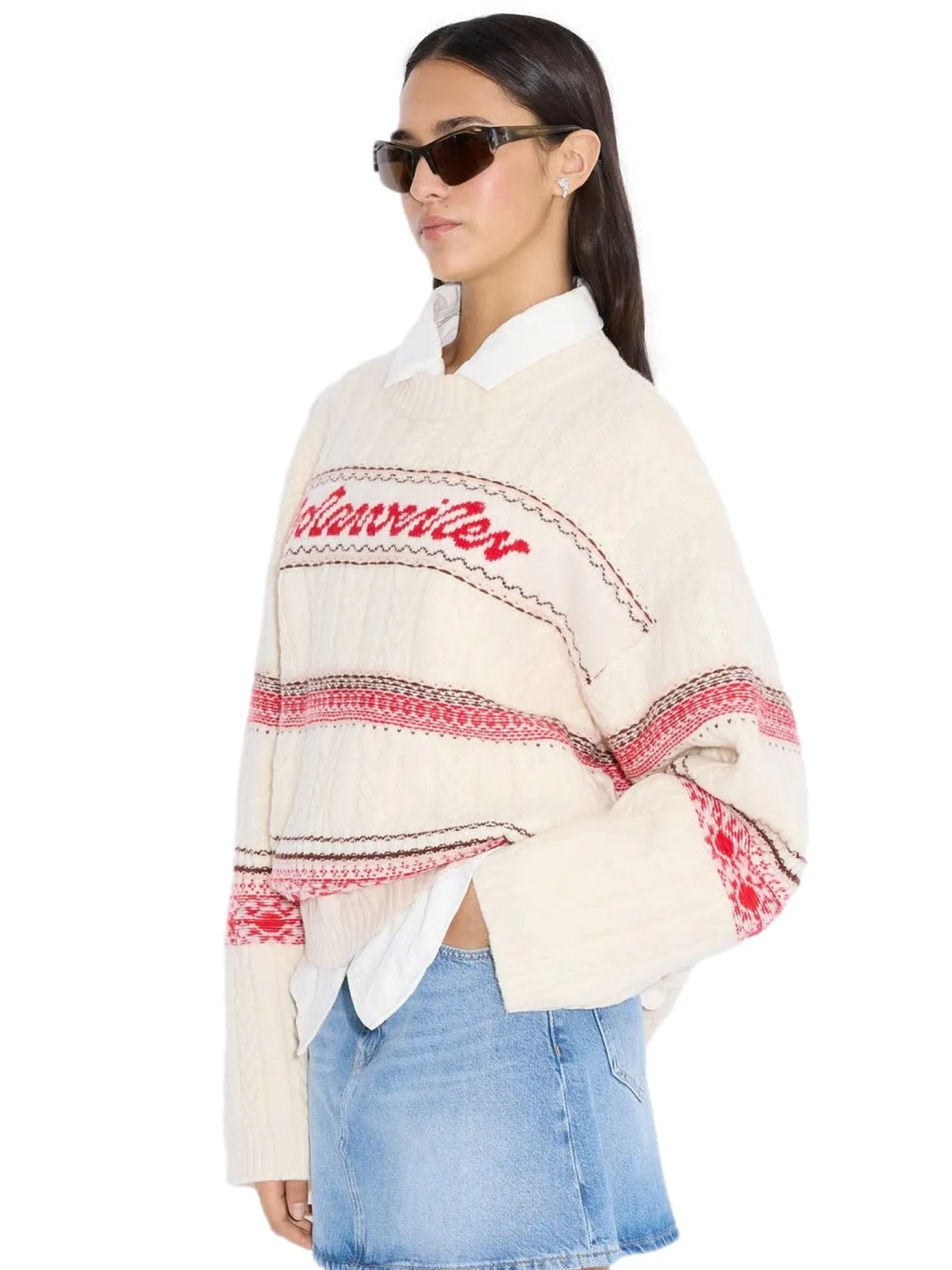Holzweiler Logo-genseren er laget av kabelstrikk avledet av en myk blanding av bomull, kashmir og ull. I tillegg til vår logo på brystet, er design med rund hals detaljert med horisontale striper og ribbekanter.