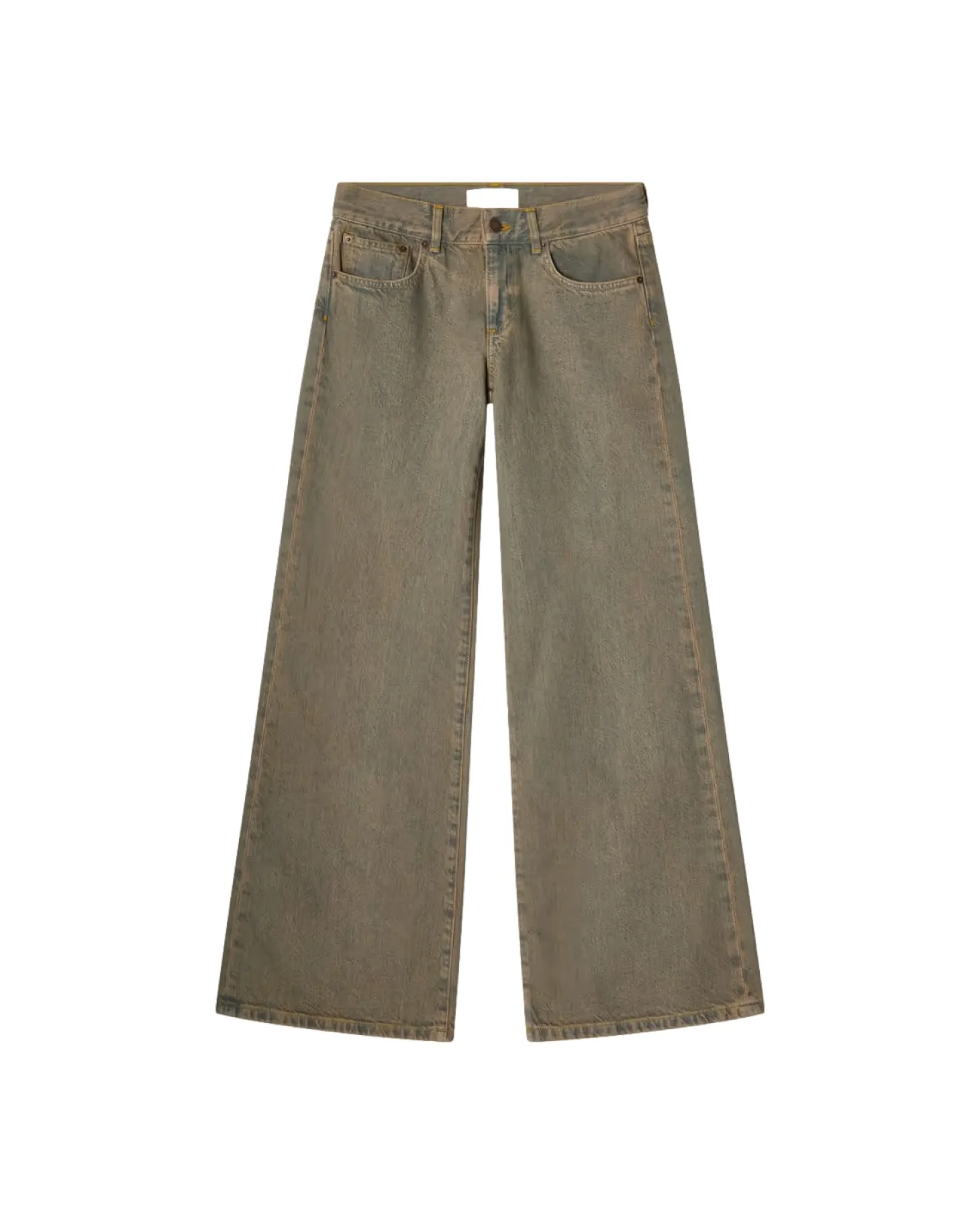 «Kyoto» er en uanstrengt kul denim med lav midje og en løsere, utsvingt silhuett. Den har glidelåsgylf, lav midje og vide ben fra låret som blir enda bredere nederst.