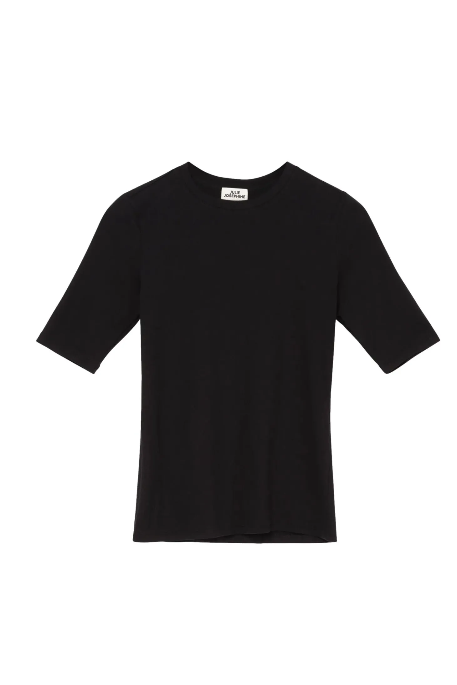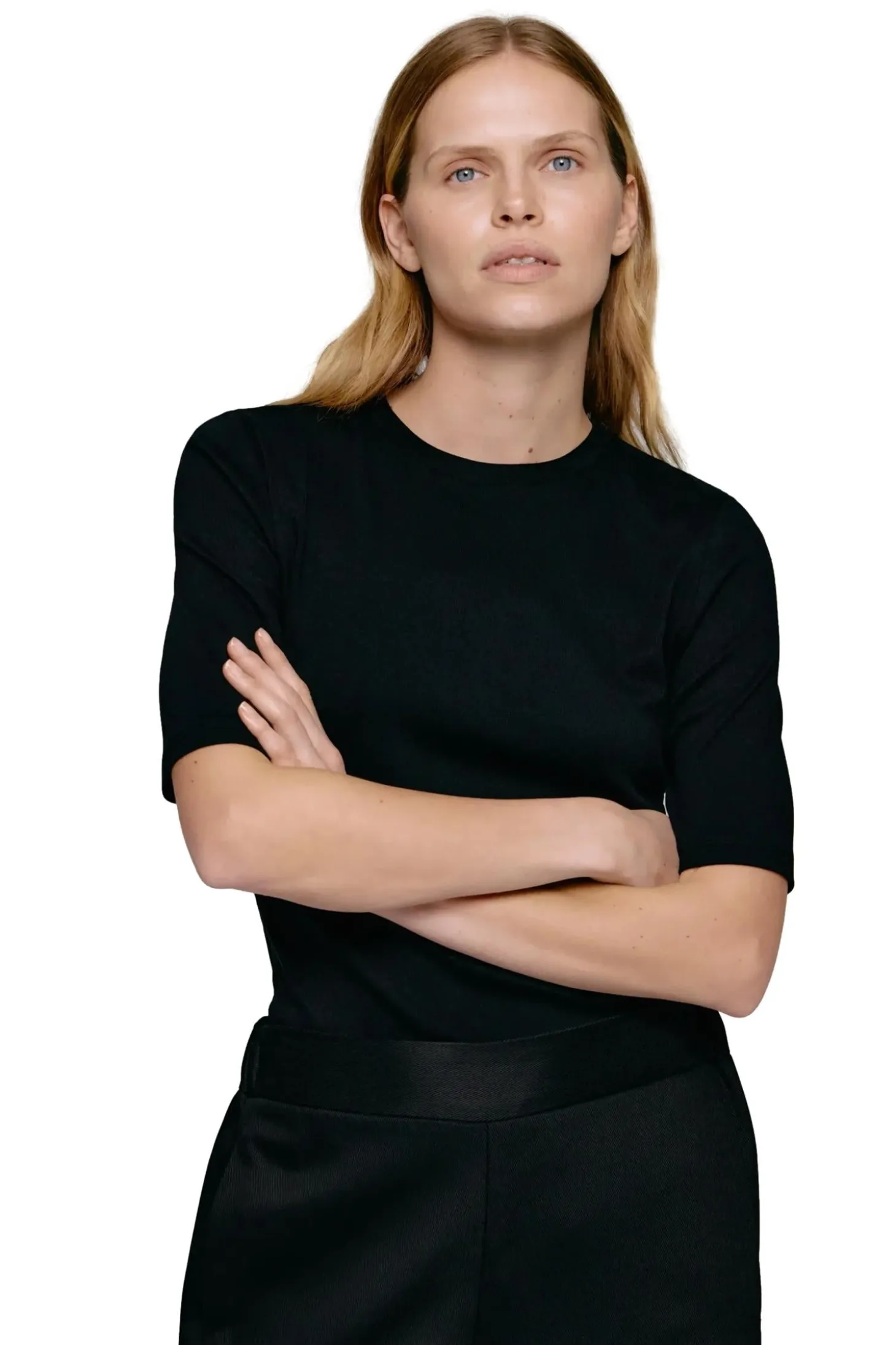 Ribbet t-skjorte med 3/4 lange ermer, rund hals og smal, men elastisk passform.