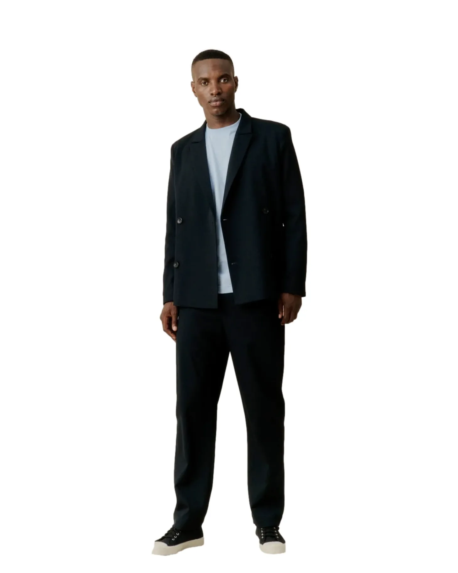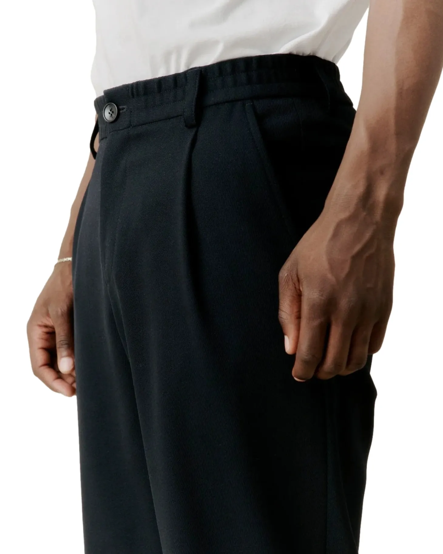Denne buksen med brede ben i full lengde er perfekt for å fullføre en hel, moderne dress i interessante silhuetter eller bare en skjorte eller t-skjorte. Elastisk midje, gylf med glidelås midt foran og knappelukking. Mellomlommer bak og skrå lommer foran. Moderne skreddersøm for allsidig bruk.