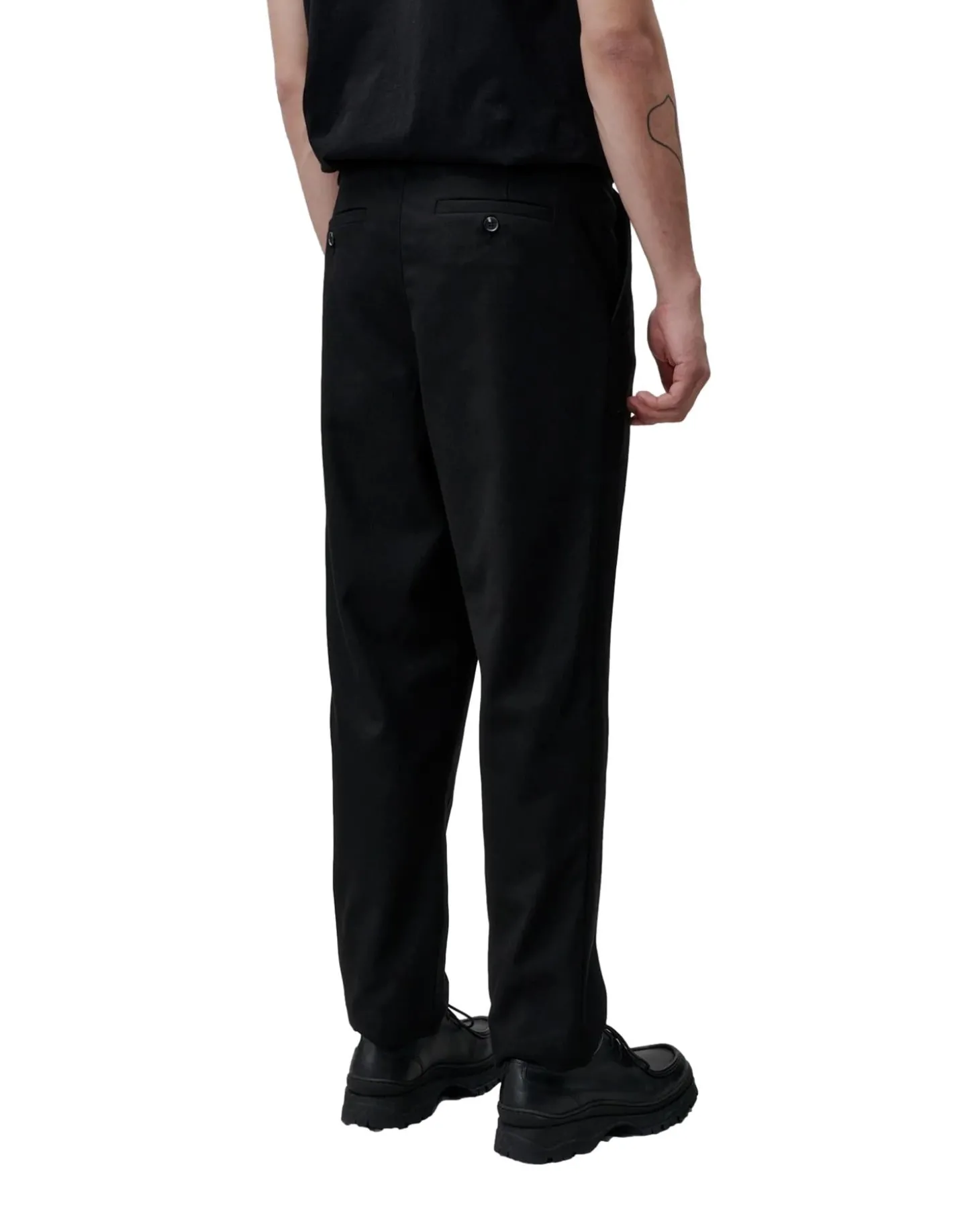 Moderne skreddersøm for allsidig bruk. Smoke-buksen har en avslappet, moderat vid passform med elastisk midje, glidelåsgylf og knappelukking foran. Passelommer bak og skrålommer foran. Det perfekte hverdagsantrekket. Smoke-buksen er laget av en strukturert polyester-/ullblanding med stretch for perfekt komfort.