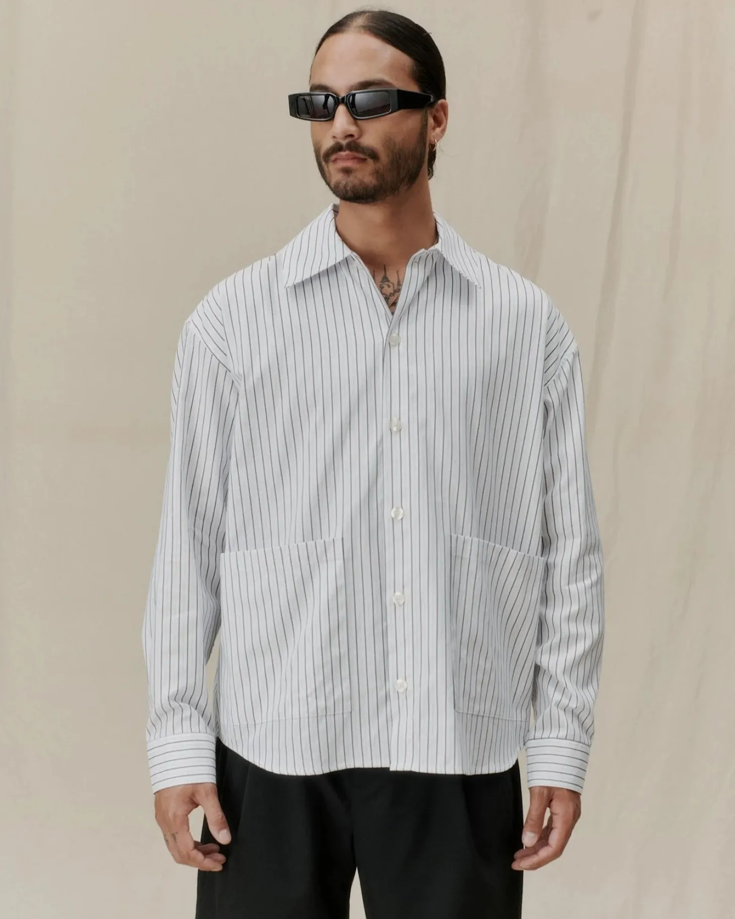 Venture-skjorten har en klassisk to-lommers skjorte, men lommene er plassert lavt på skjorten, med normal passform med rett krage og lett buet kant.