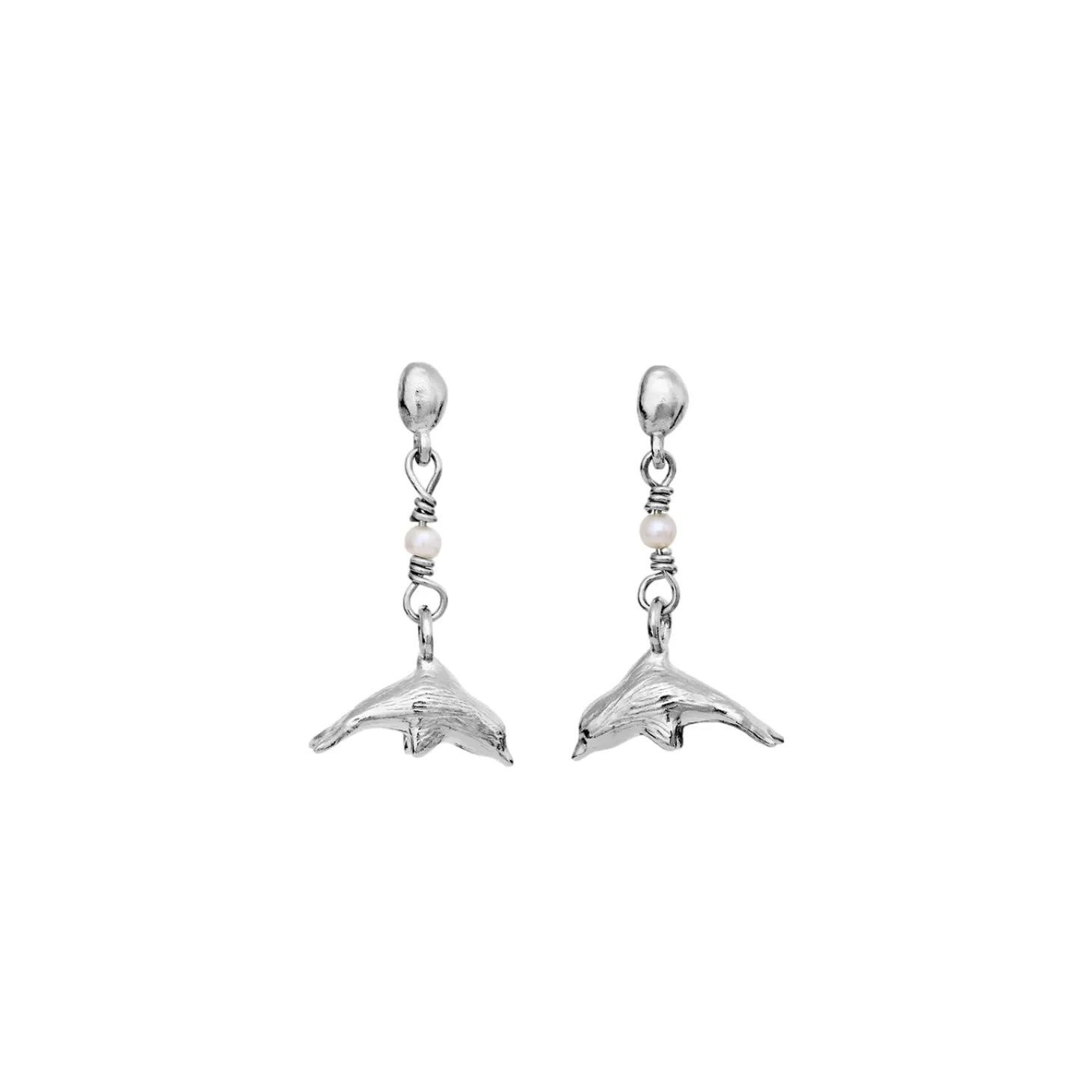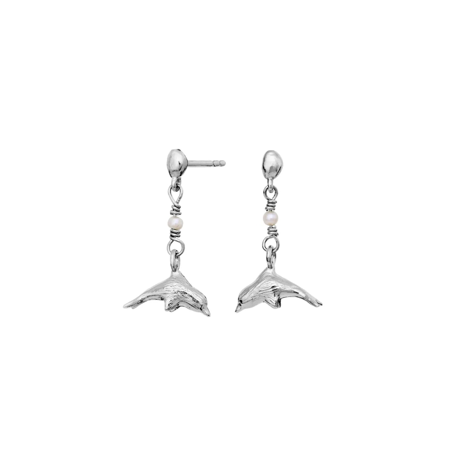 Der ferskvannsperler representerer renhet, er delfinene havets fredsskaper. Pynt deg med de to kraftige symbolene, flettet inn i den grasiøse Adella øreringen.