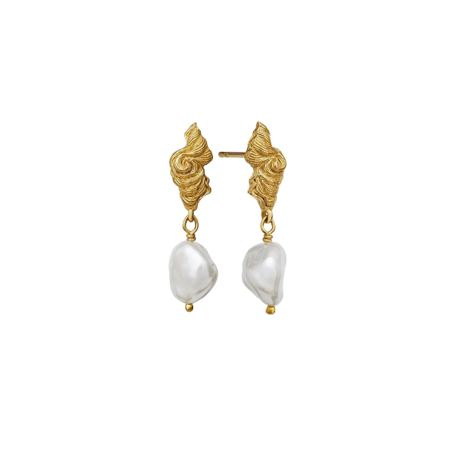 Ørering med ferskvannsperle. Lengde: 13 mm. Bredde: 6.5 mm.