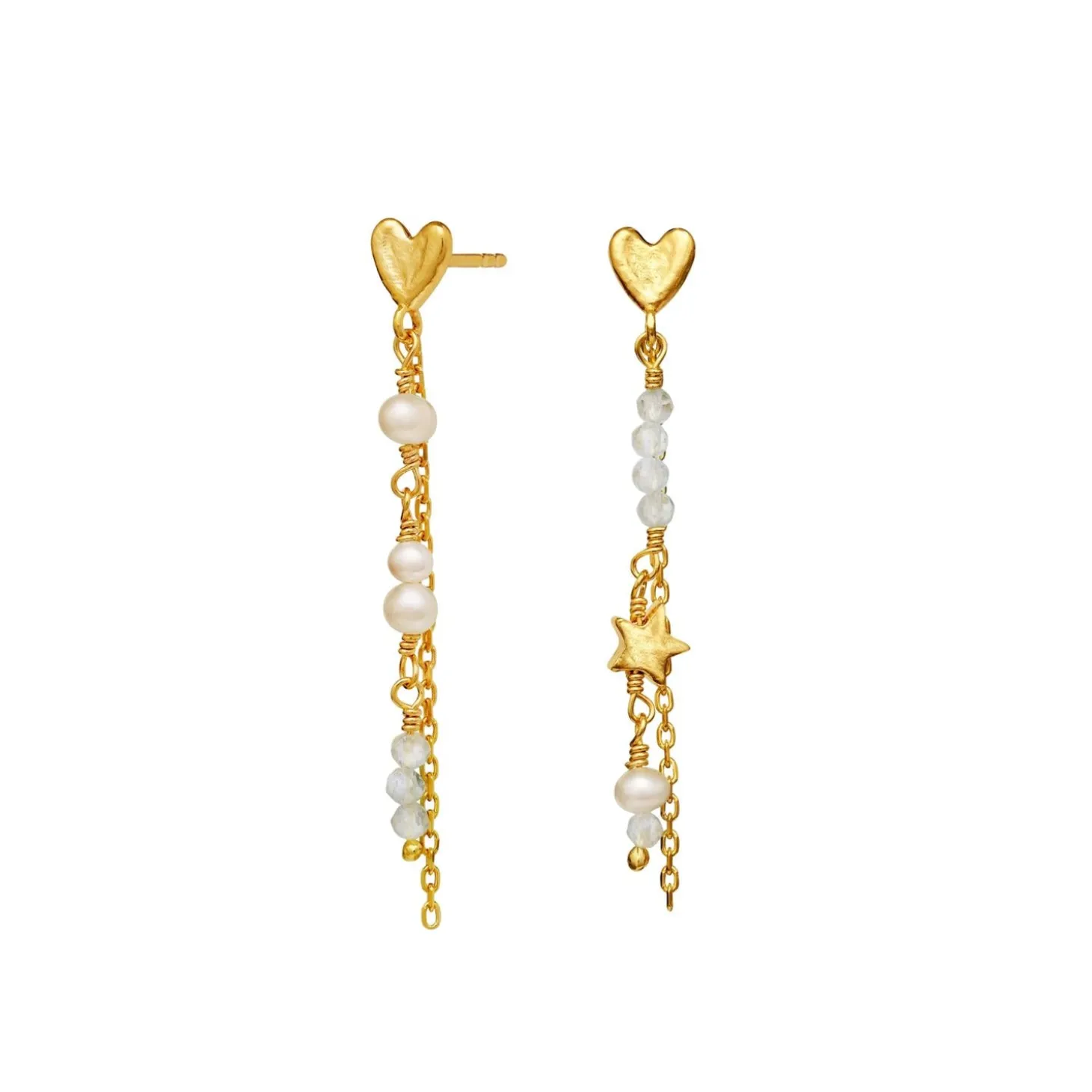 Øredobber fra Maanesten med hjerte, stjerne og perle detaljer.