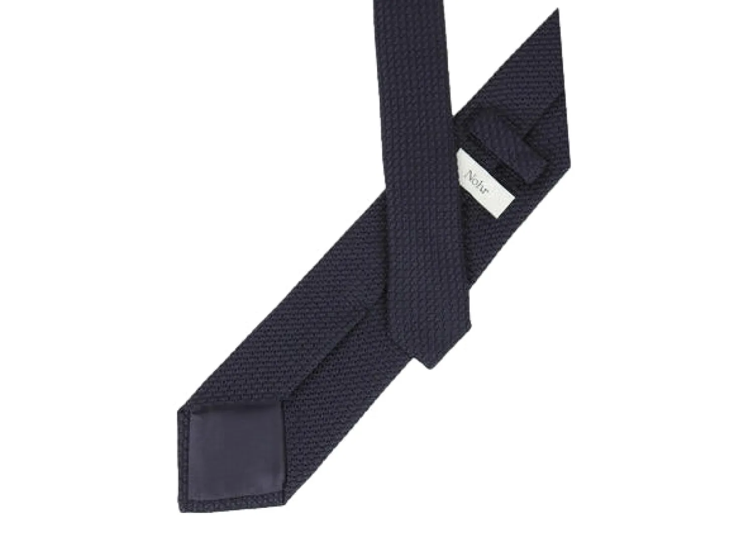 Oppgrader garderoben din med dette eksklusive NOHR navy blå grenadine-slipset, et perfekt valg for den moderne mannen som verdsetter kvalitet og stil. Laget av 100 % luksuriøs silke, dette slipset har en delikat vevet grenadine-struktur som gir et raffinert og sofistikert preg.