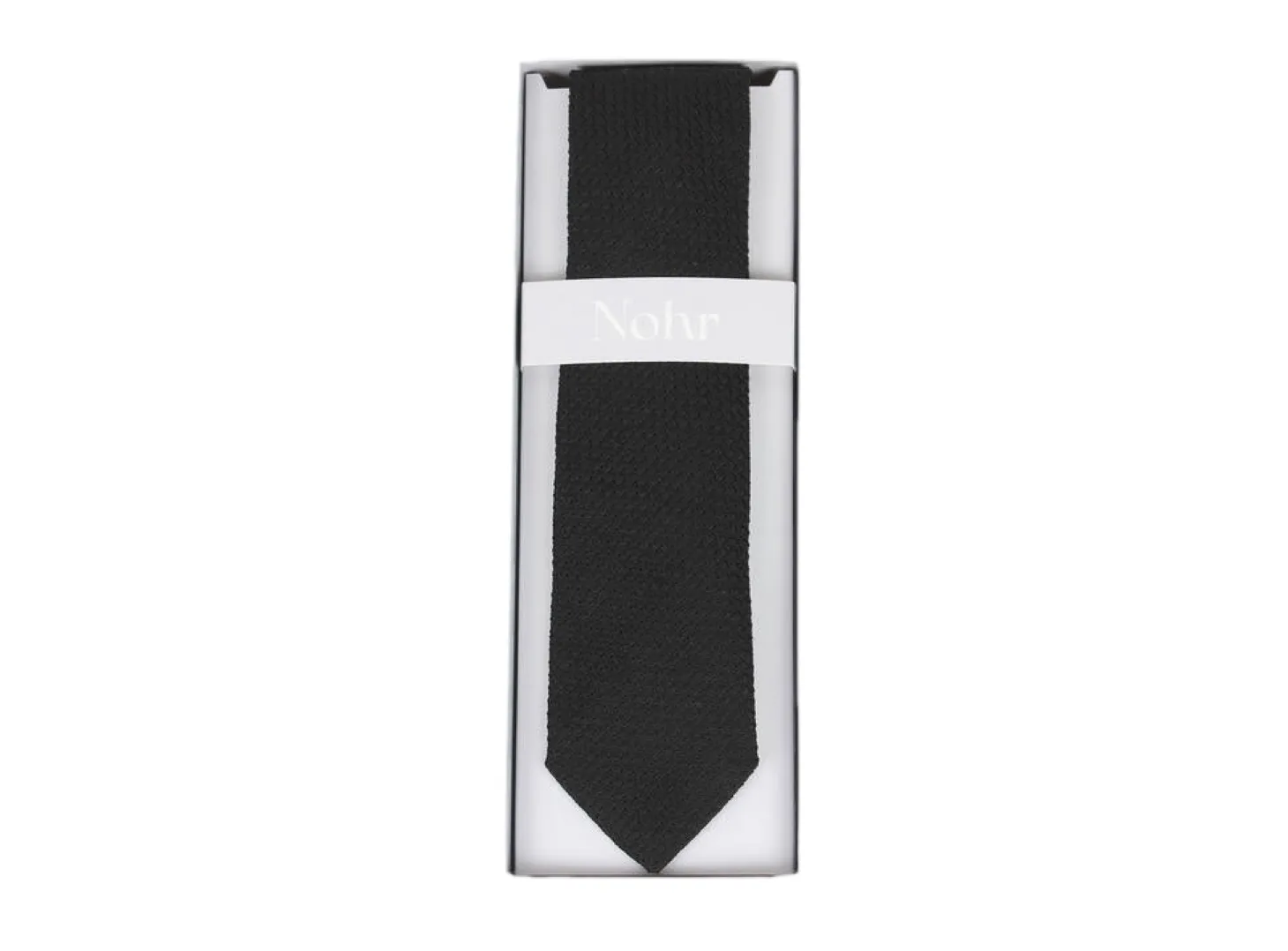 Oppgrader garderoben din med dette eksklusive NOHR navy blå grenadine-slipset, et perfekt valg for den moderne mannen som verdsetter kvalitet og stil. Laget av 100 % luksuriøs silke, dette slipset har en delikat vevet grenadine-struktur som gir et raffinert og sofistikert preg.