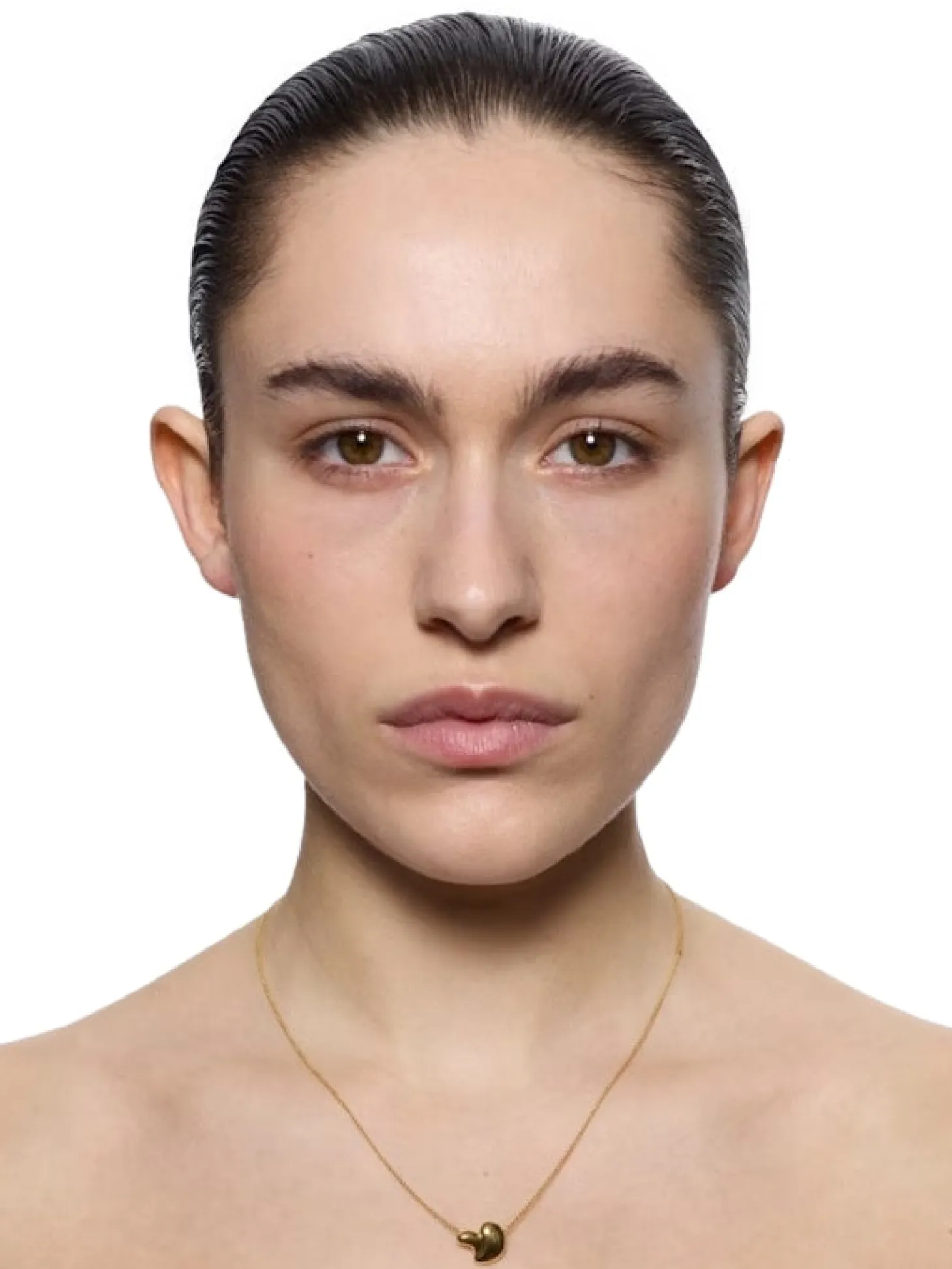 Halskjede med anheng i organisk form, anhenget henger fritt på kjedet, men er ikke avtagbart.