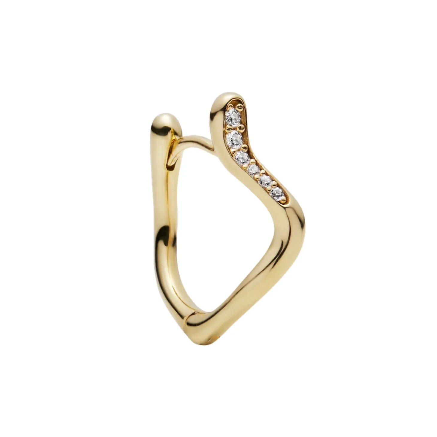 Øredobb i gull med små krystallsteiner.