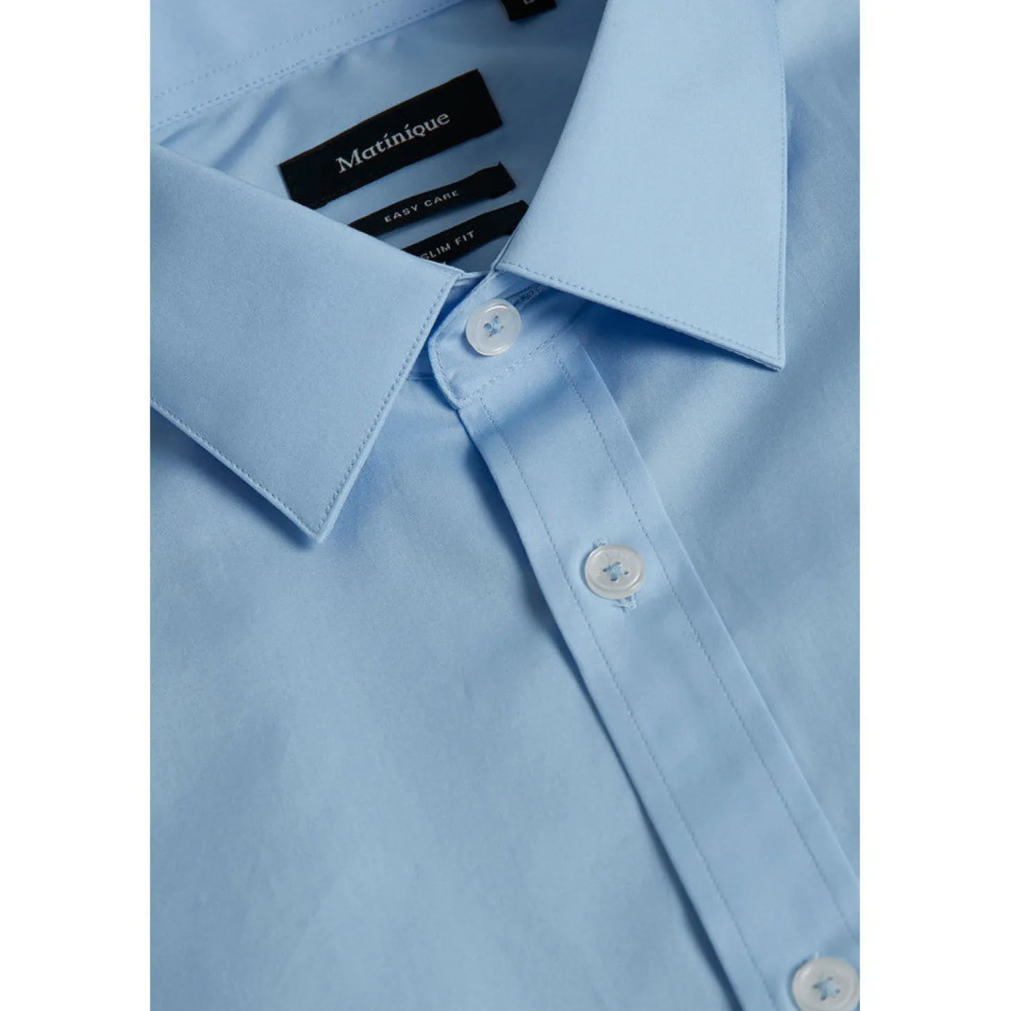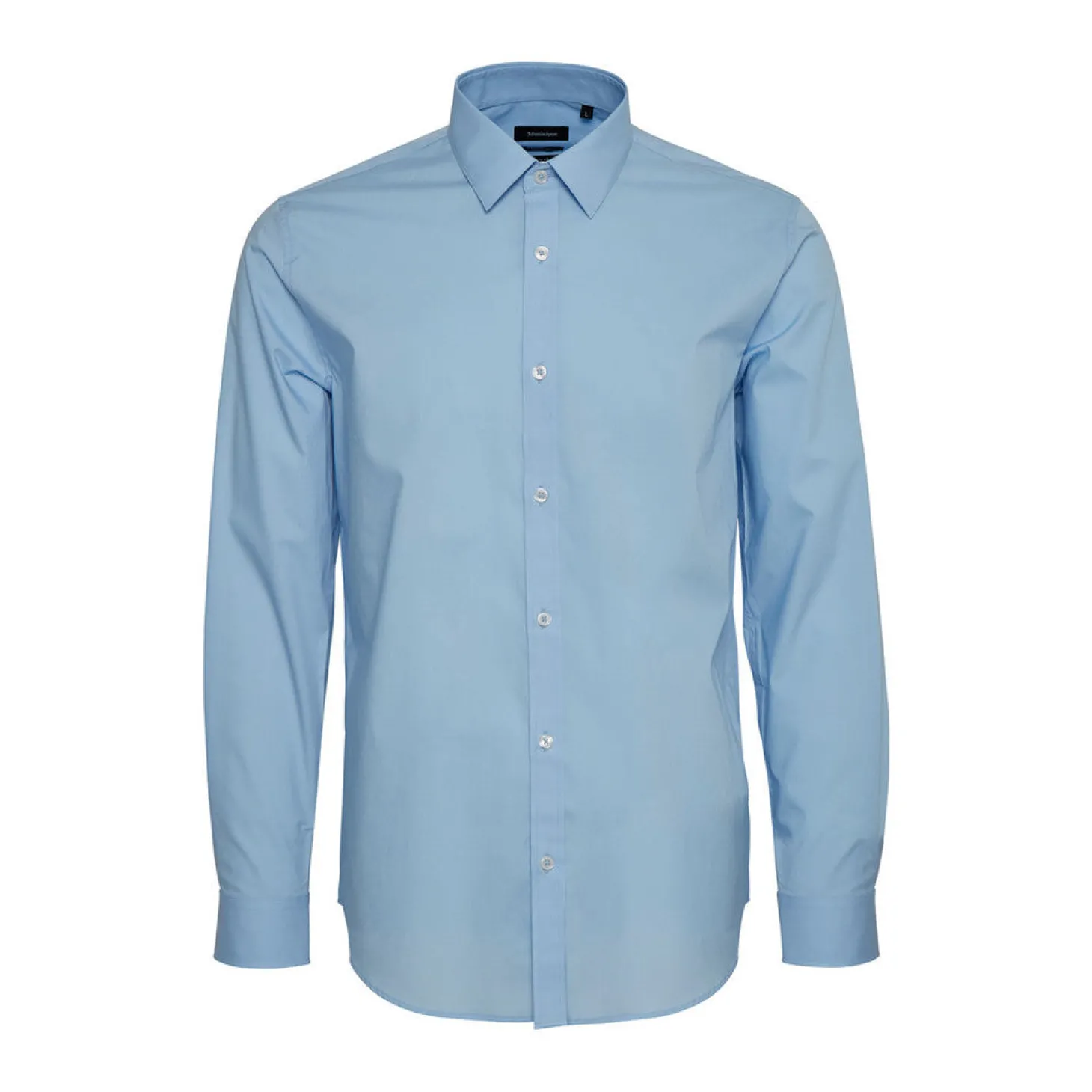 En ideell skjorte for slimfit-dresser. Skjorten er med stretch og har en smal, tilsittende passform. Klassisk og moderat snipp, med matchende knapper og avrundede mansjetter.