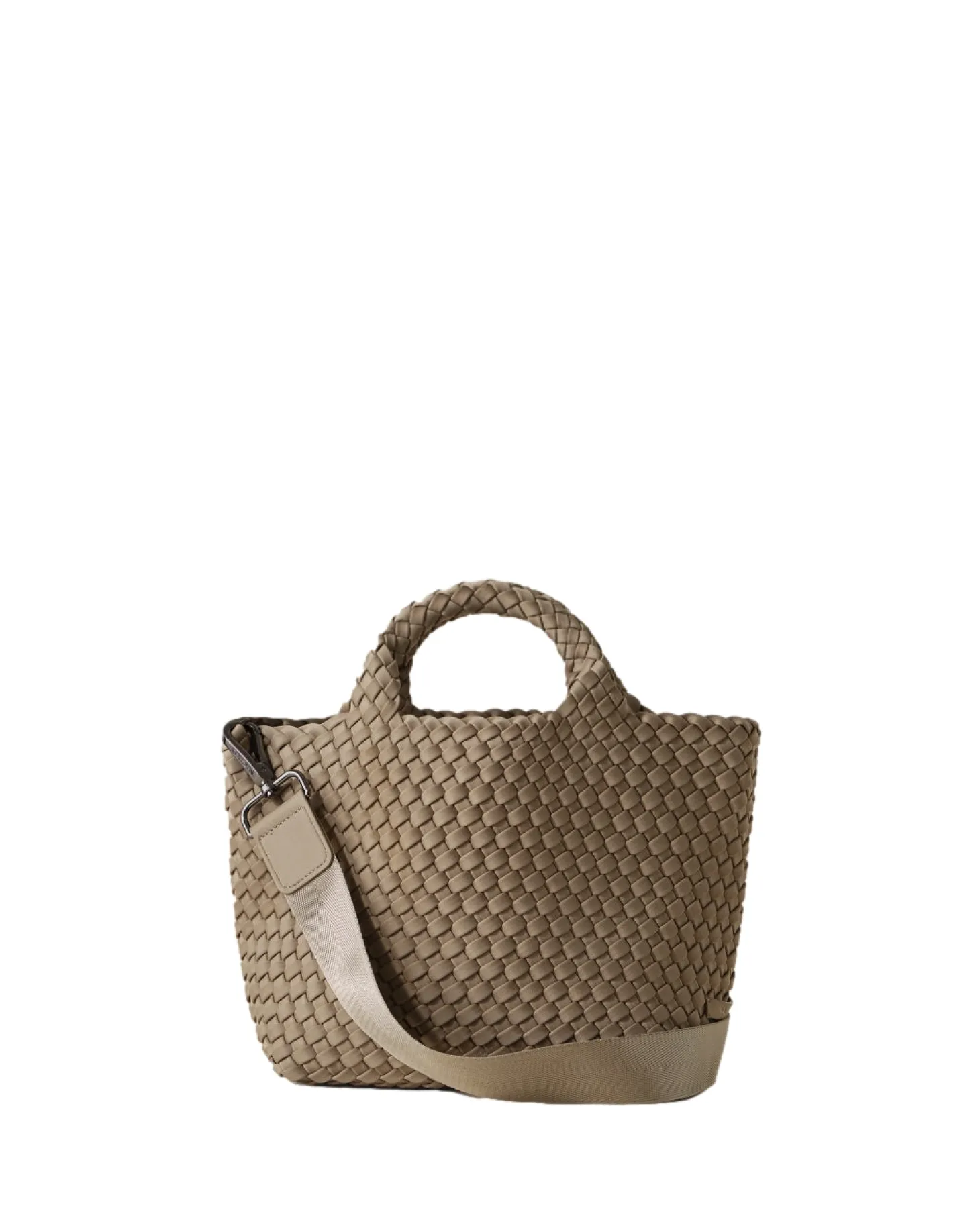 Strikket totebag veske med skulderreim. Liten pung med glidelås følger med.